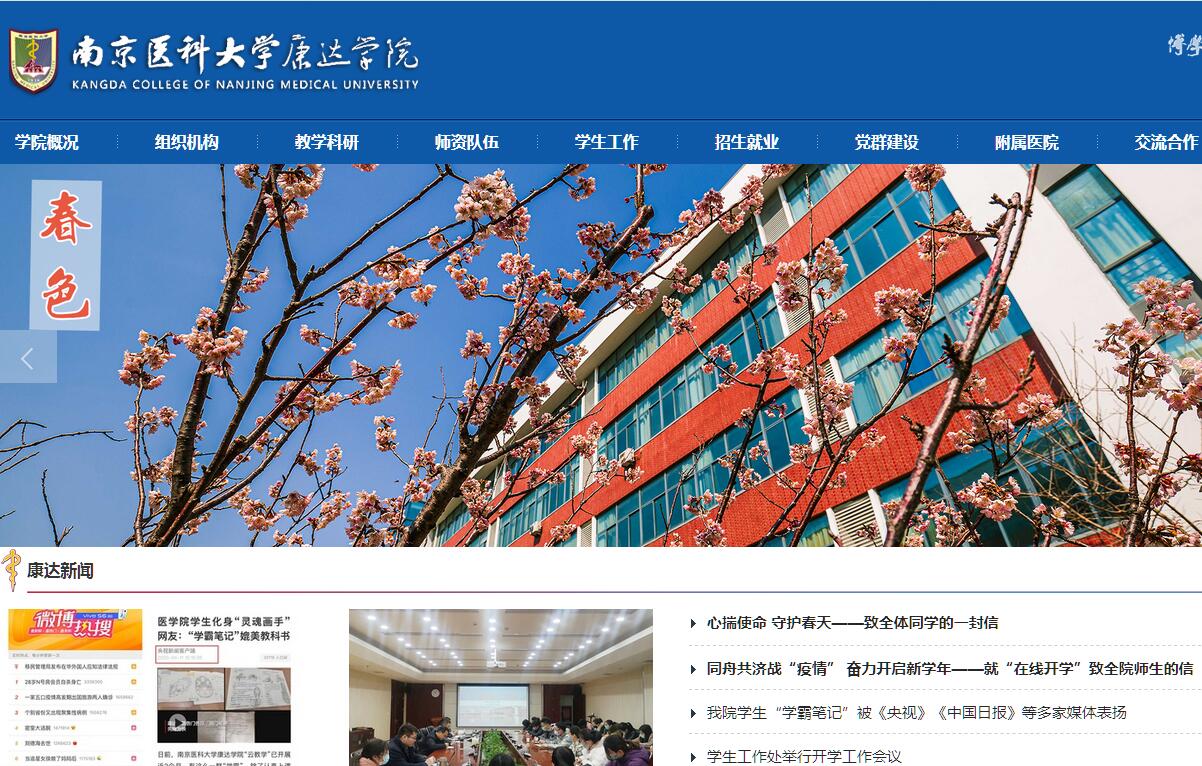 南京医科大学康达学院创建于1999年,是由南京医科大学自主创办并经省教育厅批准的公有民办二级学院。2005年,经教育部批准设立为独立学院。2011年,南京医科大学和连云港市政府签署合作办学协议。2013年9月,南京医科大学康达学院正式从南京迁址连云港办学。学院新校区位于连云港风景名胜区花果山脚下,占地面积500亩,总建筑面积达20多万平方米。学院设有基础医学部、临床医学部、护理学系、药学部、康复医学部、人文管理学系等十余个教学机构,拥有一批在国内外享有盛誉的专业带头人;现已建有11所附属医院、3所临床医学院和8所教学医院,同时共享南京医科大学二十余所附属医院的教学资源。学院现有教职工近300人,具有博士、硕士学位的教师占93.3%。学院设有临床医学、预防医学、药学、医学影像技术、护理学、公共事业管理、生物医学工程、眼视光学、康复治疗学、医学检验技术、药物制剂、医学信息工程、英语等13个专业19个方向。目前学院在校生人数为6400人。学院各项教学、实验及生活设施先进齐全。图书馆文献收藏量近80万册,同时作为南京医科大学图书馆的分馆,学院学生可以共享南京医科大学图书馆丰富的馆藏资源。学院积极探索教育教学改革,不断提升教学质量和人才培养质量,取得了显著成效。在清华大学武书连大学排行榜中,我院新生质量、毕业生质量连续三年在全国近300所独立学院中位列前10位。为了提高人才培养的质量,学院每年选派一定数量优秀学生到南京医科大学等国内知名医科院校相关专业学习一年,为学生提供到高水平医科大学进行学习与交流的机会;学院大力开展境外交流与合作,加强与港台、中亚、日韩等地区和国家医药院校之间的交流与合作,拓展学院对外办学路径。目前已与英国贝尔法斯特女王大学、加拿大西三一大学等国外院校签订联合培养本硕协议。积极探索校企合作,学院与江苏豪森医药签约举办豪森班,共同培养企业亟需人才。学院积极参与健康港城建设,开展健康宣传系列活动、急救知识宣传和技能培训、心理健康活动及志愿服务等,活动得到本地市民一致好评。经过十八年的发展与积累,康达学院已成为一个理念先进、特色鲜明、管理严格、品牌优良的独立学院,得到社会的普遍认可和广泛赞誉。学院将继承和发扬南京医科大学的优良办学传统,结合港城地方特色,重点建设全科医学、护理学、药学、康复治疗技术、医学影像技术、公共事业管理等专业;发挥医学教育的优势,带动并提升连云港地区医院整体医疗、科研、健康水平的发展,形成科教研互促、教学相长的良好发展格局;积极做好科技成果转化,服务社会经济发展。学院将继续积极探索康达特色办学之路,掀开学院发展新的历史篇章。十三五期间, 全院师生员工凝心聚力,加快发展,努力把学院建成一所地方性、应用型、有特色、高水平、国际化的医学类本科院校。