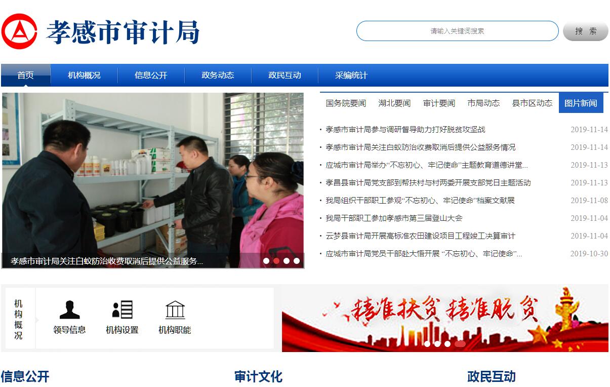 | 网站简介: 孝感市审计局是孝感市人民政府的职能部门,内设13个科室:党群工作科、综合科、法制与审理科、电子数据审计科、财政审计科(金融外资审计科)、行政事业审计科、企业审计科(经济责任审计三科)、农业农村审计科、社会保障审计科、基本建设审计科(市直“三区”审计科)、自然资源和生态环境审计科、经济责任审计一科、经济责任审计二科;3个直属单位:经济责任审计局、政府投资审计局、计算机审计信息中心;市委审计委员会办公室设在孝感市审计局,受中共孝感市委审计委员会领导;对孝感市所属7个县(市、区)审计局进行业务指导。孝感市审计局坚持以习近平新时代中国特色社会主义思想为指导,在孝感市委、市政府和省审计厅领导下,聚焦主责主业,围绕党委、政府中心工作,明确审计重点,持续加大审计力度,践行科技强审理念,落实“立身、立业、立信”要求,不断加强自身建设,服务大局的水平不断提升,在保障孝感市经济社会健康发展、促进全面深化改革、规范权力运行、促进党风廉政建设等方面发挥积极作用。先后获得“全国文明单位”、“全省首批法治创建活动示范单位”、全省第二届“人民满意的公务员集体”、“孝感市党建工作先进单位”等荣誉称号。 |