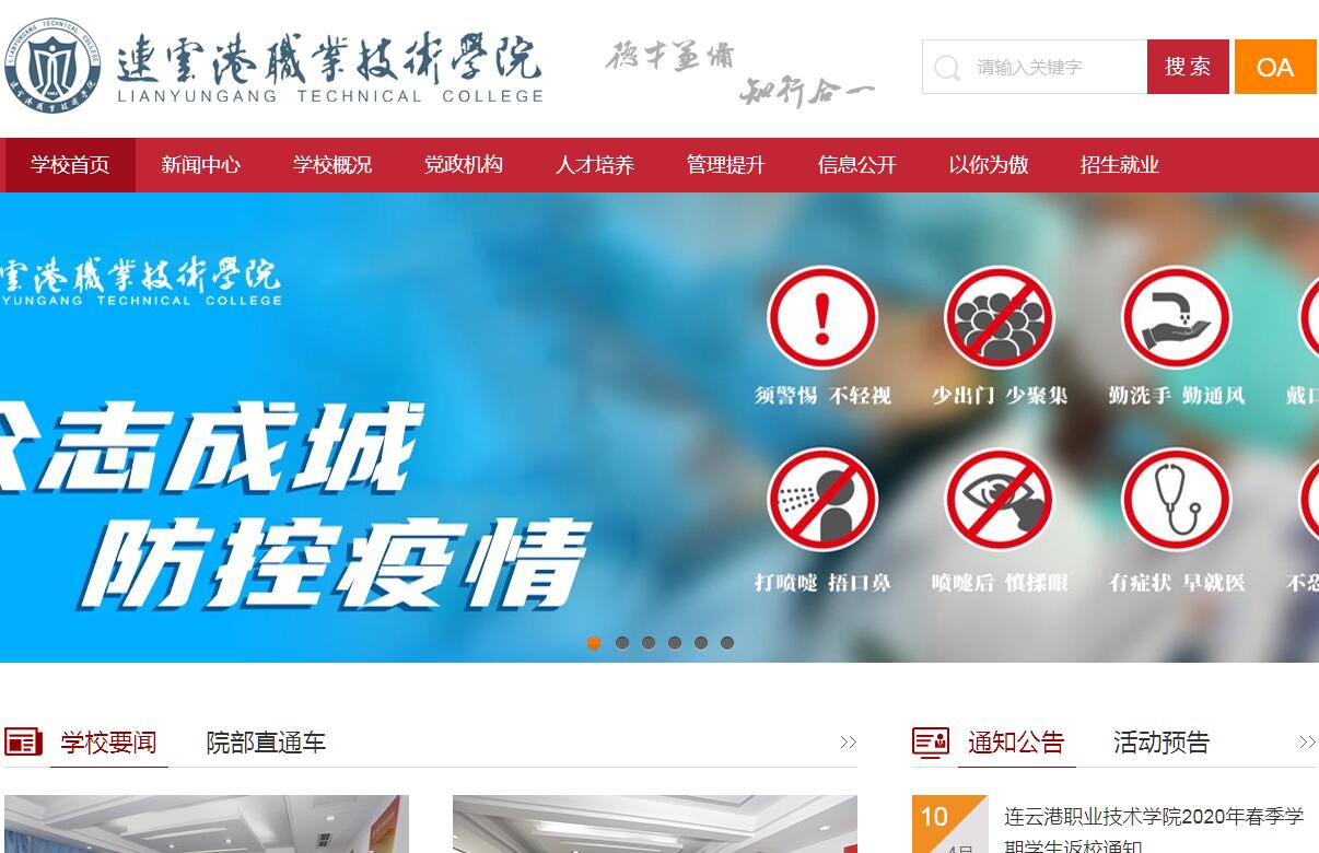 连云港职业技术学院前身是连云港职业大学,1983年3月经教育部批准成立;1999年3月,连云港职业大学与连云港市职教中心合并,更名为连云港职业技术学院。学校先后被授予“江苏省高等学校文明学校”、“江苏省高等学校和谐校园”、“江苏省高等学校思想政治教育工作先进集体”、“江苏省平安校园”、“江苏省教育收费规范高校”、“江苏省职业教育先进单位”、“江苏省四星级档案学校”、“江苏省高校毕业生就业工作先进集体”、“全国职工职业技能实训基地”、“江苏省高技能人才培养示范基地”、“连云港市高技能人才培养示范基地”等荣誉称号。学校位于“一带一路”的交汇点、新亚欧大陆桥经济走廊节点城市、中哈物流中转基地和上合组织出海基地——连云港市。2008年9月进入新校区办学,占地1150亩,建筑面积33万平方米。现有教职工500余人,全日制在校生近10000人。学校设机电工程学院、医药与化学工程学院、公共管理学院、商学院、信息工程学院、艺术与旅游学院、建筑工程学院、外国语学院(国际交流合作学院)、继续教育学院、基础课部、政治教学部等9个二级学院2个教学部共11个教学单位。学校开设50个专业,涉及农林牧渔、土木建筑、装备制造、生物与化工、食品药品与粮食、交通运输、电子信息、财经商贸、旅游、文化艺术、新闻传播、教育与体育、公共管理与服务等13个专业大类,其中物流管理、化学制药技术为国家重点建设专业,建筑工程技术、化学制药技术、数控技术应用、计算机信息管理4个专业为江苏省特色专业,计算机应用技术、化学制药技术、建筑工程技术为省级重点建设专业群,建筑工程技术、药品生产技术为省级高水平骨干专业。有计算机应用与软件技术、应用化工技术2个国家级实训基地,数控技术工程中心、建筑工程技术、艺术设计专业群3个省级实训基地,建有江苏省模具工程技术研发中心和数控、模具专业人才培养模式创新实验基地,江苏省机械工程中心产教深度融合实训平台,连云港职业技术学院国家职业技能鉴定所。学校高度重视师资队伍建设,积极实施高层次人才、“双师型”教师培养工程,教师教学、科研、社会服务能力不断增强。现有高级职称教师226人(正高级29人,副高级197人),硕士以上学位教师273人(博士学位18人,硕士学位255人),江苏省优秀教学团队2个(化学制药技术、数控技术应用),省、市高等学校教学名师5名,省“333高层次人才培养工程”培养对象22人次,省高校“青蓝工程”培养对象23人次,省“六大人才高峰”培养对象4名,省优秀教育工作者3名,享受市政府特殊津贴3名,市“521高层次人才培养工程”培养对象57人次。专任教师376人,其中具有双师素质302人,双师素质专任教师比例80.3%。近三学年教师共参加培训、进修391人次,其中出国(境)培训14人次,教师到企业实践锻炼169人次。学校积极开展对外合作办学。与连云港市人民政府合作共建连云港市公共培训基地。与南京大学、南京理工大学、南京工业大学等知名高校合作共建连云港市大学科技园;与国外很多高校建立了紧密型的交流合作关系。1999年至今,我校赴韩国交换、进修、留学累计323人;韩国来我校交换、进修累计189人;自费来我校留学生累计74人,分别来自韩国、美国、法国、蒙古国、俄罗斯、哈萨克斯坦、吉尔吉斯斯坦、乌兹别克斯坦、赞比亚、赤道几内亚、加纳、阿富汗、巴基斯坦等国。目前在校留学生共28人,来自哈萨克斯坦、吉尔吉斯斯坦、乌兹别克斯坦赞比亚、赤道几内亚、加纳、阿富汗、巴基斯坦等八个国家。学校坚持以服务发展为宗旨、以促进就业为导向、以人才培养为根本的办学指导思想,坚持为区域经济社会发展培养高素质技术技能人才的办学定位。努力践行“德才兼备,知行合一”的校训精神,以先进的教育理念引领人才培养,坚持特色发展,开放发展,和谐发展。办学四十年来,已培养毕业生5万多名,遍布连云港市及其周边地区,为地方经济建设和社会发展发挥着重要作用。2017年,学校成功召开连云港职业技术学院第二次党员代表大会,擎画了学校事业发展的崭新蓝图。面向未来,学校将坚持以习近平新时代中国特色社会主义思想和党的十九大精神为指引,紧密对接地方经济社会发展需要,大力实施质量立校、改革兴校、人才强校、立德荣校、依法治校五大战略,不断提升人才培养质量、办学水平和服务社会能力,团结带领全校各级党组织和全体师生员工,同心同德、攻坚克难、开拓进取,为建设立足连云港、服务苏北、面向淮海经济区的区域知名业界有名特色鲜明的高职院校而努力奋斗!