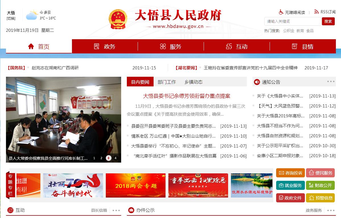 大悟县位于湖北省东北部,地处大别山西端南麓,1933年建县,原名礼山县。为纪念大悟山根据地人民在历次革命战争中的卓越贡献,1952年更名为大悟县。全县国土面积1986平方公里,辖经济开发区、高铁经济试验区、悟峰山生态文化旅游度假区和17个乡镇,总人口64.7万,森林覆盖率53.3%。大悟是一个人杰地灵、有着光荣革命传统的红色土地。大悟是全国著名的革命老区和十大将军县之一,自1925年境内成立党组织以来,历经土地革命战争、抗日战争和解放战争,一直是红色政区的腹地和革命斗争的中心,新四军第五师以大悟山为中心创建了纵横千里的鄂豫边区抗日根据地,震惊中外的“中原突围”在宣化店打响了解放战争第一枪。大悟先后有15万人参加革命,7万英雄儿女献出了宝贵生命,涌现出了徐海东、程世才、聂凤智、周志坚等37位开国将军,走出了刘华清、钱运录等一大批党政军高级领导人,周恩来、董必武、李先念等老一辈无产阶级革命家也在这里留下了战斗史诗和光辉足迹。大悟是一个交通便捷、有着独特区位优势的区域宝地。京广高铁在大悟设立地级中间站——孝感北站,大悟到武汉只需28分钟,京港澳高速公路纵贯南北,麻竹高速、大别山红色旅游公路横穿东西,正在建设武大高速、346国道穿越县境,这些国家级交通大动脉与境内的省道黄土线、宋应线及通乡通村公路相连,形成了全县所有乡镇“半小时上高速公路、到高铁站,1小时到武汉”的通勤圈,是鄂北区域性现代交通枢纽。大悟是一个资源丰富、有着无限发展商机的投资热土。现有板栗面积70万亩、青油茶45万亩、花生35万亩、药材10万亩,先后获评中国乌桕之乡、板栗之乡、名茶之乡、国家经济林建设示范县、国家绿色食品花生标准化示范区和全国电子商务进农村综合示范县。大悟旅游资源独具特色,中原突围纪念馆、新四军第五师司令部旧址等红色文化和悟峰山十八潭、金鼓铁寨等绿色风光交相辉映,“金秋好时节、大悟赏红叶”“田园故里、乡约金岭” 等旅游品牌享誉全国。大悟是一个机遇叠加、有着强劲发展后劲的鄂北名城。大悟作为国家级贫困县,先后被列入全国“整村推进、连片开发”试点县、全省脱贫奔小康试点县、大别山革命老区经济社会发展试验区、大别山片区扶贫攻坚重点县、大别山革命老区振兴发展规划,并享受西部大开发政策。当前,大悟县委、县政府抢抓叠加惠顾的重大历史机遇,大力弘扬“中原突围”精神,认真贯彻新发展理念,全面实施“生态立县、产业兴县、开放活县”战略,加快建设大别山革命老区经济强县。
