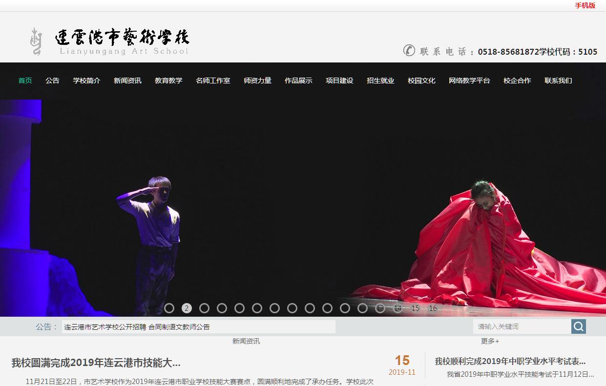 连云港市艺术学校创建于1959年,是连云港市唯一一所全日制中等艺术专业学校。学校占地面积70亩,校舍建筑面积3.8万平方米,是一所文化底蕴深厚的园林式学校。经过近60年的艰苦奋斗和辛勤耕耘,学校已发展成为专业设置齐全、师资力量雄厚,在江苏省艺术教育界具有一定影响的艺术类专业学校。学校设有舞蹈表演、音乐、美术设计与制作、戏曲表演四个专业。其音乐专业为国家级民族文化传承示范专业、省级特色专业;舞蹈表演专业为省级特色专业、省级示范专业、省级课程改革实验点;戏曲表演专业为国家级非物质文化遗产淮海戏传承基地;学校艺术剧院为省级高水平示范性实训基地。学校主要任务是为社会培养艺术精品人才和为高等艺术院校输送优秀毕业生,开设公共基础课程和专业技能课程。毕业生高考升学率稳定在90%以上,舞蹈表演专业高考升学率多年达100%。学校组建的青年歌舞团,先后受国家文化部、中国侨联委派赴欧、美、亚、非等数十个国家和港澳台地区进行文化交流演出,并作为江苏省职教艺术团(分团)、连云港市廉政文化艺术团, 每年承担“江苏省高雅艺术进校园”、“连云港市廉政文化乡村行”等演出活动。 近年来,学校被授予“江苏省精神文明先进单位”、“江苏省文化系统先进集体”、“江苏省中等职业学校先进集体”、“江苏省中等职业学校德育工作先进集体”等荣誉称号。