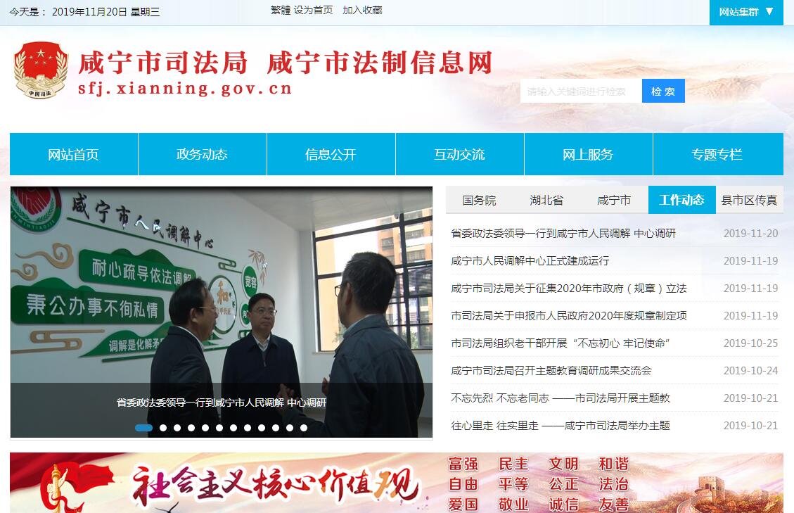 咸宁市司法局,为市政府工作部门,其主要职责是:(一)制定全市司法行政工作的中长期规划、年度工作计划并监督实施。(二)指导、监督全市司法行政系统戒毒场所的管理工作。(三)拟定全市法制宣传教育和普及法律常识规划并组织实施;指导各地各行业的法制宣传、依法治理和对外法制宣传。(四)负责指导、监督全市律师、公证工作并承担相应责任。(五)监督管理全市的法律援助工作。(六)指导、监督全市基层司法所建设、人民调解和基层法律服务工作;会同人民法院指导人民陪审员工作;参与社会管理综合治理工作。(七)指导、监督全市社区矫正工作,指导全市非监禁刑罚执行和刑释解教人员帮教安置工作。(八)负责组织实施本市国家司法考试工作并承担相应责任。(九)指导、监督全市司法鉴定管理工作;负责全市司法鉴定人和司法鉴定机构的登记管理工作。(十)指导、监督全市司法行政系统的法制工作;指导全市仲裁机构登记工作。(十一)负责全市司法行政系统枪支、弹药、服装和警车管理工作;指导、监督全市司法行政系统计划财务工作。(十二)指导、监督全市司法行政队伍建设;负责管理局机关和直属单位干部人事工作;负责全市司法行政系统的警务管理和警务督察工作;协调各县(市、区)管理司法局领导干部。(十三)为规模以上企业提供“直通车”服务。(十四)承办上级交办的其他事项。