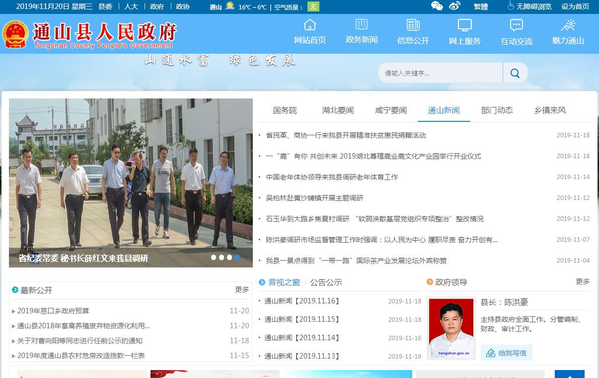 | 网站简介: 通山县,位于湖北省东南部,隶属咸宁市,为武汉城市圈重要组成部分。县境南邻江西省武宁、修水县毗邻,东接阳新县,北连咸宁市,西部与崇阳县接壤。通山县辖8个镇、4个乡、1个管委会。2016年通山县常住人口总数为51万人,其中农业人口38.62万人,城镇人口13万人。全县最大横距71千米,最大纵距60千米,总面积2680平方公里,其中耕地面积26.6万亩,森林面积110万亩。县人民政府驻地通羊镇洋都大道100号。2016年11月,通山县被国家旅游局评为第二批国家全域旅游示范区。2019年3月,被确定为第一批革命文物保护利用片区分县名单。2019年4月29日,湖北省人民政府决定通山县退出贫困县。 |