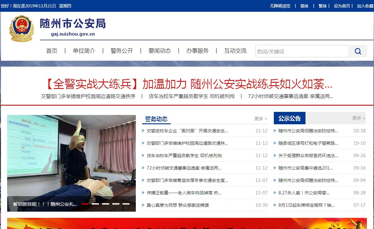 随州市公安局主要职责:1、拟订公安规范性文件,部署、指导、监督、检查全市公安工作。2、掌握影响社会稳定、危害国内安全和社会治安的情况,分析形势,制定对策。3、组织、指导、协调对恐怖活动的防范、侦察工作。4、防范、处置邪教组织的违法犯罪活动。5、组织、指导全市各地公安机关的侦查工作,协调处置跨区域重大危害国家安全犯罪和刑事犯罪案件。6、负责治安管理工作并承担相应责任。协调处置重大治安事故和群体性事件;指导、监督全市各地公安机关依法查处危害社会治安秩序行为,依法管理危险物品和特种行业等工作;指导、监督全市各地公安机关对国家机关、社会团体、企事业单位和重点建设工程的治安保卫工作以及群众性治安保卫组织的治安防范工作。7、指导、监督全市各地公安机关禁毒、缉毒工作,承担市禁毒工作领导小组办公室的日常工作。8、负责全市出入境管理及外国人在市内居留旅行有关管理工作。9、负责消防工作并承担相应责任。指导、监督、协调全市消防监督、火灾预防、火灾扑救工作和公安应急抢险救援工作。10、负责到我市视察工作的党和国家领导人以及重要外宾的安全警卫工作并承担相应责任。11、指导、监督全市各地公安机关对公共信息网络的安全保护工作,负责信息安全等级保护工作的指导、监督、检查。12、指导、监督全市各地公安机关依法承担的执行刑罚工作和看守所、拘留所以及公安机关管理的强制隔离戒毒所、收容教育所的管理工作。13、负责全市道路交通安全管理工作并承担相应责任。指导、监督全市各地公安机关维护道路交通安全、道路交通秩序以及机动车辆(不含拖拉机)、驾驶人管理工作。14、领导全市公安消防部队;对武警部队执行公安任务实施领导和指挥。15、拟订公安科技信息建设发展规划,负责公安科技信息建设工作;组织、指导、监督实施安全技术防范工作。16、拟订全市各地公安机关装备、被装配备和经费等警务保障措施,指导、监督全市各地公安机关警务保障标准、制度的落实。17、组织、指导全市公安队伍建设.按规定权限管理干部;组织、指导公安机关警务督察工作,按规定权限实施对干部的监督、查处或督办公安队伍重大违纪案件。18、领导在我市的铁道、林业等部门的公安业务工作。19、为重点企业提供“直通车”服务。20、承办上级交办的其他事项。