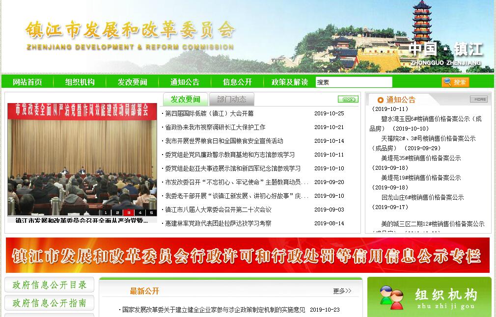 镇江市发展和改革委员会,为市政府工作部门。其主要职责是:(一)拟订实施国民经济和社会发展战略、中长期规划和年度计划;负责重要经济总量的平衡及重大比例关系的综合协调,提出国民经济发展和经济结构优化的战略目标及政策。统筹协调经济建设和社会发展,提出综合运用各种经济手段和政策的建议。加强全市国民经济和社会发展的监测、预测与预警分析。研究宏观经济运行、总量平衡、经济安全和总体产业安全等重要问题,提出宏观调控政策建议。组织开展全市科学发展评价考核工作。受市政府委托向市人大提交国民经济和社会发展计划的报告。(二)拟订实施市级主体功能区规划、区域规划及重大基础设施等领域的专项规划和计划。负责发展规划之间的衔接以及发展规划与土地利用总体规划、城乡规划的衔接平衡,负责有关发展规划及计划的审核、评估和管理工作。(三)指导推进全市经济体制改革。拟订综合性经济体制改革方案,协调有关专项改革,负责有关专项改革方案与总体改革方案的衔接。协调解决有关改革的重大问题,协调指导年度重点改革工作,推进有关领域改革,指导有关改革试点工作。(四)综合管理全市固定资产投资。提出全社会固定资产投资总规模和投资结构的调控目标、政策与措施,引导民间投资方向。提出投资体制改革建议方案并组织实施。负责规划重大建设项目布局和重点建设项目投资管理,统筹协调固定资产投资项目的市场准入、财政、金融、环保、土地、资源利用等方面的政策。提出资金年度规模和投向,并纳入投资计划管理。建立健全政府投资资金及投资项目监管制度,审批政府投资项目的项目建议书、可行性研究报告、初步设计及概算,按照权限核准、备案固定资产投资项目、企业投资项目和外商投资项目,审核和转报由上级审批、核准的固定资产投资项目。会同相关部门协调市级政府投资项目代建制工作。组织重大建设项目稽察工作。(五)推进经济结构战略性调整。组织实施综合性产业政策,负责协调第一、二、三产业发展的重大问题并衔接相关发展规划和重大政策。提出农村经济发展战略规划和有关政策建议,综合协调农业和农村经济发展的重大问题。协调解决重大技术装备推广应用等方面的重大问题。组织重大特色产业基地建设,指导协调和组织推进新兴产业发展。安排重大工业和高技术产业建设项目,拟订高技术产业发展、新兴产业、产业技术进步和产业现代化的战略、规划及重大政策。综合协调全市服务业发展工作,拟订服务业发展战略、规划和重大政策。提出全市交通发展战略、规划及重大政策。统筹协调基础产业发展中的重大问题。(六)负责社会发展与国民经济发展的政策衔接。组织拟订社会发展战略、规划和计划,综合协调人口和计划生育、科学技术、教育、文化、卫生、体育、广播电视、旅游、政法、民政等领域发展和改革中的重大问题及政策。组织全市社会发展总体水平评估,提出促进社会全面发展的政策建议。提出促进就业、调整收入分配、完善社会保障与经济协调发展的政策建议,协调改善民生、推进基本公共服务均等化的有关工作。(七)拟订利用外资和境外投资的战略、规划,提出利用外资总量平衡、结构优化的目标和政策。负责我市全口径外债的总量控制、结构优化和监测,指导和监督国外贷款建设资金的使用。按照权限核准、审批或审核转报外商投资项目、借用国外贷款项目、境外投资项目,负责进口设备免税确认。参与开发区总体规划、设立审核和政策协调工作。(八)负责重要商品的总量平衡和宏观调控。按分工编制并监督执行全市有关重要商品、原材料进出口总量计划,组织实施粮食、棉花进出口计划;会同有关部门管理市级粮食、食用植物油等储备。(九)统筹协调市际间地区经济协作。负责组织市际间对口支援、援建协调等工作,参与东西部合作和市际间合作交流工作。负责我市参与长三角地区、南京都市圈合作与发展的组织协调工作。负责以工代赈工作。(十)推进可持续发展战略和节约型社会建设。负责资源节约和环境保护综合协调工作,拟订实施发展循环经济、全社会资源节约和综合利用、清洁生产规划及政策措施,参与拟订和协调国土整治、开发、利用、保护的政策;参与编制水资源平衡与节约规划、生态建设与环境保护规划。负责全市应对气候变化工作。(十一)提出城市化发展战略和重大政策措施,拟订城市化发展规划。(十二)拟订全市国民经济和社会发展、经济体制改革的规范性文件。(十三)提出全市证券、期货市场和企业上市的总体规划、年度计划;配合上级证监机构,对我市证券、期货业务进行监督管理;指导上市公司规范运作;负责上市预备企业筛选、培育工作,指导拟上市公司的股票发行工作;负责企业发行债券的审核、转报和监督工作;协调创业投资和股权(产业)投资基金的发展。(十四)拟订实施能源发展战略、规划和政策,协调能源发展和改革中的重大问题;研究能源战略布局,推动结构调整。监测能源发展状况,衔接能源生产建设和供需平衡,指导协调农村能源发展工作。(十五)负责全市国民经济动员工作。拟订全市国民经济动员规划、计划和预案,协调国民经济动员与国家经济、国防建设之间的重大问题。