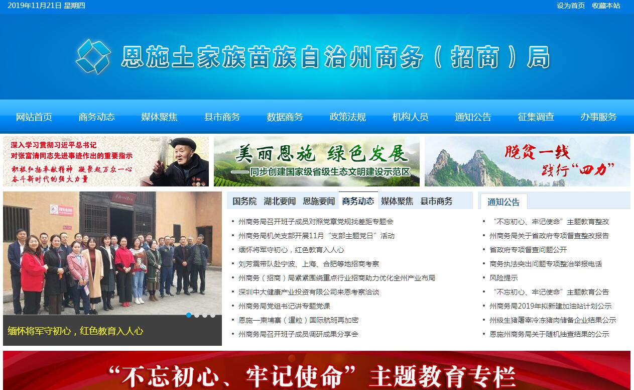 恩施土家族苗族自治州商务局,为州政府工作部门,加挂恩施土家族苗族自治州招商局牌子。其主要职责是:(一)实施“开放活州”战略,推动全州扩大对外开放工作;贯彻执行国家对外开放、利用外资和国际经济技术交流与合作以及国际国内贸易发展战略、方针、政策,拟订全州外向型经济发展和国际国内贸易发展战略以及具体政策措施和实施办法。(二)研究提出并指导全州流通体制改革,参与研究和拟订全州商品市场建设管理的具体办法,协调指导全州商品市场建设与发展,监测分析市场运行和商品供求状况;组织实施主要消费品的市场调控和重要生产资料与重要生活资料的流通监督;承担全州老旧汽车报废更新和二手车交易市场的监督管理责任,规范汽车和汽车配件市场秩序;促进现代市场体系的建立和完善。(三)参与拟订全州流通业的有关规范性文件;拟定全州国内贸易的中长期规划和年度目标;负责全州内外贸易商品的流通管理与协调工作,推进流通产业结构调整和连锁经营、物流配送、电子商务等现代流通方式;指导和规范全州批发、零售、免税商店、饮食服务、商品展销、拍卖、再生资源回收等商业和服务业;负责全州石油成品油、茧丝绸市场行业管理;负责全州中小商贸企业融资担保、国内贸易信用保险申报补助等工作,推动商务领域信用建设,指导商业信用销售,建立市场诚信公共服务平台。(四)提出和拟订全州利用外资、国际经济技术交流与合作、招商引资的发展战略和中长期规划;负责负责全州外资企业备案登记;指导全州外商投资项目合同、章程及其变更、终止、解散工作与外商投资企业的进出口工作、投资促进工作;指导、监督、检查外商投资企业和外来投资企业执行有关法规和合同、章程的情况;组织全州外商投资企业联合年检工作;综合协调、指导全州经济技术开发区和工业园区建设的有关具体工作。(五)贯彻执行国家关于对外贸易及机电产品进出口的法律、法规、方针政策;负责全州进出口的协调、管理;拟订和执行全州进出口发展规划、年度计划及其相关的政策措施;指导全州进出口业务工作,指导协调全州对外贸易的通关、通检工作;负责组织申报全州商务系统各项业务资金、专项资金项目并实施监督管理;汇总编报全州年度进出口计划指标,并对执行情况进行检查;负责全州进出口贸易统计工作。(六)指导境外驻州经贸代表机构开展工作;研究拟订适应我州服务贸易发展的政策和措施,指导、协调全州服务贸易工作。(七)贯彻执行国家国际经济技术交流与合作发展战略;负责全州对外承包工程、劳务合作、设计咨询等监督管理;负责拟订本州公民出境就业管理实施办法,承担境外就业中介机构监督管理等职责;指导企业对外经济技术交流与合作,开展国际化经营,协调企业实施海外投资;负责全州对外援助项目和有关国际组织对恩施州经济技术交流与合作的有关工作;负责监督多边、双边对恩施州的无偿援助及捐赠。(八)贯彻执行国家对外技术贸易的法律法规和政策;鼓励高新技术出口和成套设备进出口;推进全州科技兴贸战略,并拟订全州技术贸易的管理办法;推进进出口贸易标准化体系建设;依法监督管理全州技术引进、国家限制出口的技术和引进技术的出口工作。(九)负责全州招商引资工作;负责全州在境内外举办的对外经贸交易会、展销会、洽谈会、博览会及有关涉外招商经贸活动。(十)组织并指导全州企业执行国家有关反倾销、反补贴、保障措施及其他与进出口公平贸易相关的法律法规和政策,建立进出口公平贸易机制;协助有关部门进行产业损害调查;负责协调国外对我州出口商品的反倾销,反补贴、保障措施的应诉及相关工作。(十一)负责全州商务领域综合行政执法的监督、检查、督办、宣传教育和考核工作;负责办理商务部、省商务厅要求督办落实的商务执法案件和全州跨区域重大案件的查处工作;负责全州12312商务举报投诉服务中心的工作。(十二)研究拟订全州药品流通行业发展规划和有关促进政策并组织实施;维护公平竞争,完善统一、开放、竞争、有序的药品流通市场体系;指导和推动药品流通企业发展现代流通方式,提高流通效率和行业组织化水平,开展国际交流合作;建立药品流通行业统计制度;指导行业协会实行行业自律,开展行业培训,推动行业信用建设。(十三)负责指导全州商务系统的联合会、协会、学会等社团组织工作;负责全州内外贸易职业技术培训,指导州商务技工学校、州商业饮食服务国家职业技能鉴定所、州招商服务中心的工作。(十四)加强为企业提供服务的职责,以良好的服务态度、最快的办事效率,为全州内外贸企业提供优质服务,严格履行公开承诺服务制度,达到行政提速的目标。(十五)承办上级交办的其他事项。