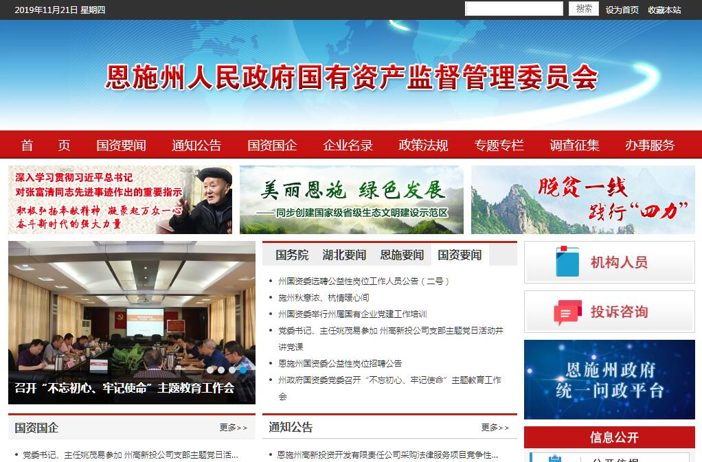 恩施土家族苗族自治州人民政府国有资产监督管理委员会,为州政府工作部门。其主要职责是:(一)根据州政府授权,依照《中华人民共和国公司法》、《中华人民共和国企业国有资产法》等法律和行政法规履行出资人职责,监管州级国有资产,加强国有资产的管理工作。(二)承担监督所监管企业国有资产保值增值的责任。建立和完善国有资产保值增值指标体系,制定所监管企业负责人经营业绩考核办法并组织年度和任期的业绩考核;通过统计、稽核对所监管企业国有资产的保值增值情况进行监管;负责所监管企业负责人收入分配政策并组织实施。(三)指导推进全州国有企业改革和重组,推进全州国有企业的现代企业制度建设,完善公司治理结构,推动全州国有经济结构和布局的战略性调整。(四)按照有关规定,代表州政府向所监管企业派出监事会,负责监事会的日常管理工作。(五)按照干部管理权限,通过法定程序对所监管企业负责人进行任免、考核并根据其经营业绩进行奖惩;建立符合社会主义市场经济体制和现代企业制度要求的选人、用人机制,完善经营者激励和约束制度。(六)负责组织所监管企业上交国有资本收益,参与制定国有资本预算有关管理制度和办法。按照有关规定编制所监管企业国有资本经营预决算草案报州财政局汇总,并负责执行。(七)贯彻执行国家关于国有企业改革的方针政策;指导全州国有企业现代制度建设;研究指导所监管企业股份制改造、合并、合资等重组方案和国有资产经营公司的组建方案,对其中需要国有股东决定的事项提出意见。(八)负责企业国有资产基础管理,贯彻落实国有资产管理的法律、法规,拟订有关规范性文件草案,指导企业法律顾问工作,依法对州以下国有资产管理工作进行指导和监督。(九)承办上级交办的其他事项。