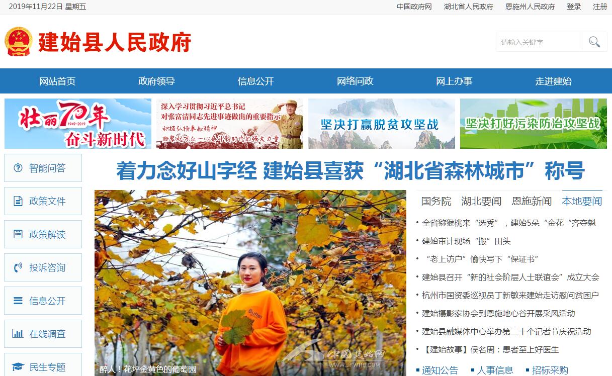 建始县系湖北省恩施土家族苗族自治州(以下简称“恩施州”)所辖8个县(市)之一。下辖7镇3乡410个村(社区),2016年末总户数170885户,51.46万人,其中农业人口45.8万人,土家族、苗族等少数民族人口占36.3%。县域国土面积2666.55平方千米、耕地面积4.68万公顷、森林面积243万亩。平均海拔1152米,最高海拔2090米,最低海拔287米,年均气温13.1摄氏度,年均降雨量1600毫米。县城业州镇位于县境北部偏西的一个山区小盆地中,距省会武汉市607千米,距恩施机场59千米。318国道和209国道、宜万铁路、沪渝高速公路、清江黄金水道,以及正在建设的银百高速贯穿县境。 建始县历史悠久,建县于西晋初269年,分巫县而置;同时,新设建平都尉统领建始等四县,距今已有1748年。县名来源于“皇帝年号”,历史上共有6个皇帝将他们的年号命名为“建始”,最早的是公元前32年到公元前28年2月,西汉汉成帝刘骜将他的第一个年号取名为建始。正因为“建始”作为皇帝年号且包含着吉祥美好、兴旺发达之寓意,所以也就一直沿用至今。建始县位于湖北南边陲、武陵山腹地,东连巴东县,以野三河为界;西接恩施市,以太阳河为界;南邻鹤峰县,以长河、茶寮河为界;北与重庆市奉节、巫山两县接壤。县域版图形似蘑菇,南北长89千米,东西最宽64.5于米,最窄12.5千米。建始地处神秘的北纬30度,即北纬30°06'~30°54',东经109°32'~110°12',生态优良,资源富集,素有“金建始”美誉。境内植被繁茂,森林覆盖率达66.32%,是中国南方最大的曰本落叶松生产和科研基地县、“华中药库”地道药材主产区之一。位于鄂西生态文化旅游圈核心旅游板块,有全国罕见的原生态河谷野三河、八百里清江画廊最美河段景阳河、巴盐古道石门河等,是理想居住地和休闲渡假圣地;现已经建成野三峡旅游区、石门古风旅游区、朝阳观景区、龙五淌旅游休闲度假区等景区。地处国内连片面积最大的富硒生物圈,魔芋双歧因子、猕猴桃果酒、关口葡萄、景阳鸡、马坡茶、稀世宝矿泉水等富硒特色产品远负盛名。