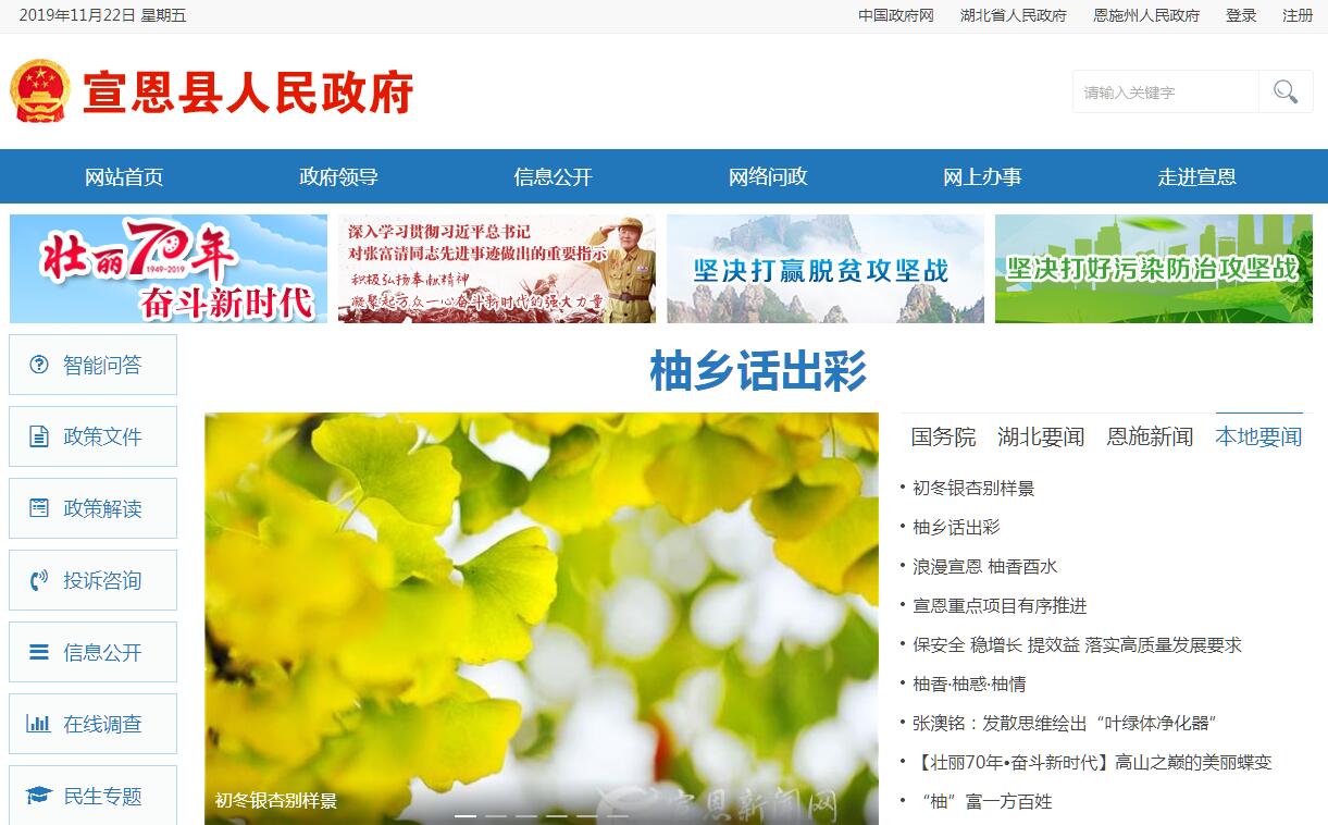 宣恩,于清朝设县治。雍正十三年(1735)农历十一月壬寅日(12月10日),兵部和吏部据湖广总督迈柱疏呈合议,获乾隆恩准,定名宣恩,寓意“宣示浩荡皇恩”。以施南、东乡、忠建、高罗、忠峒、木册六土司地外加石虎里地域益之,第一任知县陈寀于乾隆元年勘边界定疆域,以施南土司故基置县署。宣恩,地处湖北省西南边陲,北纬30°黄金分割线穿境而过,境内自然资源富集、山水风光秀丽、民族风情浓郁。全县国土面积2737平方公里,辖5镇4乡、279个村、5个城市社区和1个国家级自然保护区(七姊妹山)、1个省级工业园区,总人口36.2万人,其中少数民族人口占66.6%。宣恩是山区农业县。“八山一水一分田”是对宣恩地貌的形象写照,800米以上的山地占70%以上。宣恩是民族文化艺术之乡。“宣恩薅草锣鼓”、“宣恩三棒鼓”入选国家级非物质文化遗产保护名录,彭家寨、庆阳凉亭古街被命名为“中国历史文化名村”,“小茅坡营”有湖北省唯一保留完整的苗语苗俗文化。宣恩是特色村寨集中地。彭家寨吊脚楼群被中国古建筑专家张良皋先生盛赞为湖北省吊脚楼群的“头号种子选手”,“茶马古道”庆阳坝凉亭古街,“人间秘境、水墨侗乡”野椒园古侗寨、美丽苗乡谭家坝、“千户土家”水田坝、茶旅融合伍家台,村村寨寨是景点。宣恩是革命老区。国内革命战争时期,贺龙元帅带领工农红军转战宣恩八年之久,创建湘鄂边、湘鄂川黔革命根据地,板栗园大捷载入《中国工农红军第二方面军战史》;全县共有3000多人为中国革命捐躯。宣恩是资源富集区。享有中国贡品之乡、中国白柚之乡等美誉;天然气储量近千亿立方米;水能资源理论蕴藏量达60万千瓦,其中可开发量45万千瓦;森林覆盖率57.3%,林木绿化率72.4%,负氧离子浓度经监测最高值可达24000个/cm³,平均空气质量优良天数达340天以上,是天然的大氧吧和避暑胜地。