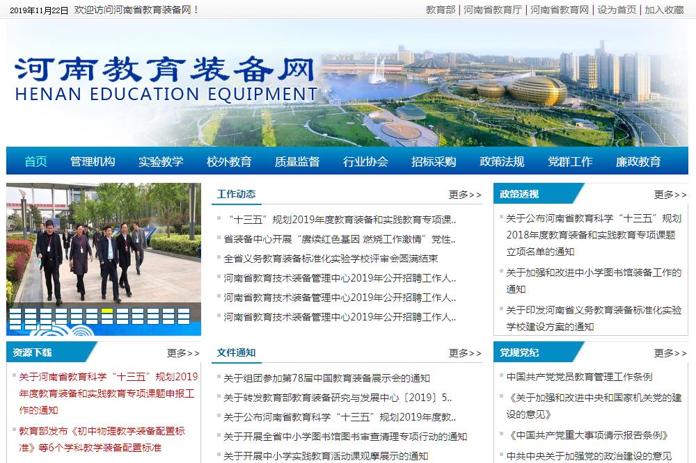 河南省教育技术装备管理中心,系河南省教育厅直属事业单位,规格正处级,现有领导班子成员5人。职工200余人,其中,事业编制70人,公司聘用员工150人,管理技术人员65人,正高级职称1人,中级以上职称35人。有15个科室,3个公司。教育装备:负责全省教育装备发展规划和装备标准的研究、制订和实施;负责全省教育装备创新成果的受理、审核和发布;负责指导全省中小学后勤装备工作。实验教学:负责中小学实验教学的指导和管理;负责中小学实验室建设、管理、配备和使用等工作;负责全省中小学实验教学优质课评选;负责全省中小学实验教学用书的编写。负责组织全省普通高中招生物理、化学、生物实验操作考试工作。质量监督:负责全省教育装备质量监督检验工作。校外教育:根据省统一安排,负责中小学生实践教育基地、校外活动中心建设规划、标准制订、指导实施等工作;负责省实践教育优质课评选。省级课题:负责“十三五”规划教育装备和实践教育省级课题的管理、立项和结项。教育保险:负责全省校方责任险、学生实习责任保险的组织和实施。学生校服:负责全省中小学生校服政策制订、指导、培训和监督等工作。图书馆配:负责全省中小学图书馆的建设、配备、管理、应用、培训、评估等工作。其他工作:负责全省勤工俭学和教育装备行业协会的业务指导;负责完成省教育厅交办的其他工作。