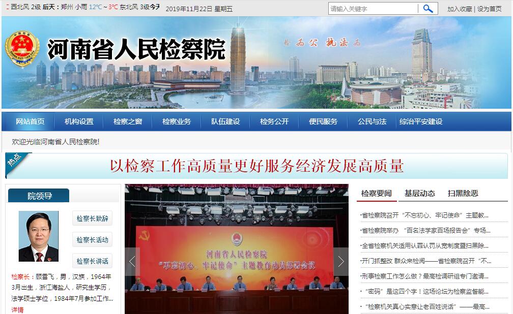 河南省人民检察院是全省检察机关的领导机关,接受省委和最高人民检察院的领导,对省人大及其常委会负责并报告工作,接受省人大及其常委会的监督。河南省共有183个人民检察院,除河南省人民检察院外,省辖市人民检察院17个,省人民检察院分院2个,县级人民检察院163个。全省共有检察人员17609人。河南省人民检察院机关主要职责:一、依法向省人大及其常委会提出议案。二、根据省委和最高人民检察院的统一部署,领导和组织实施全省检察机关的工作。三、依法对在全省有重大影响的贪污贿赂犯罪、国家机关工作人员渎职犯罪和国家机关工作人员利用职权实施的非法拘禁、刑讯逼供、报复陷害、非法搜查等侵犯公民人身权利和民主权利犯罪进行侦查。四、对在全省有重大影响的刑事犯罪案件依法批准或决定逮捕、提起公诉,指导全省检察机关对重大、疑难、复杂案件的审查逮捕、审查起诉工作。五、组织领导全省检察机关依法对刑事诉讼、民事审判、行政诉讼进行法律监督。六、受理单位和个人的报案、控告、申诉、举报以及犯罪嫌疑人的自首。七、组织指导全省检察机关开展职务犯罪预防工作,提出预防对策,进行调研和法制宣传。八、指导全省检察机关检察技术物证检验、鉴定、复核工作和信息化建设、应用、培训、信息安全工作。九、对全省检察工作中具体应用法律问题进行法律政策研究。十、组织指导全省检察机关的队伍建设和思想政治工作;协同主管部门管理全省检察机关的机构设置及人员编制,依法管理检察官及其他检察人员;协同地方党委搞好省辖市级人民检察院的领导班子建设;组织指导全省检察干部教育培训工作。十一、规划和指导全省检察机关的财务装备工作。十二、组织指导全省检察机关的对外交流,按照法律法规和最高人民检察院规定,开展有关国际司法协助及涉外案件的协助工作。