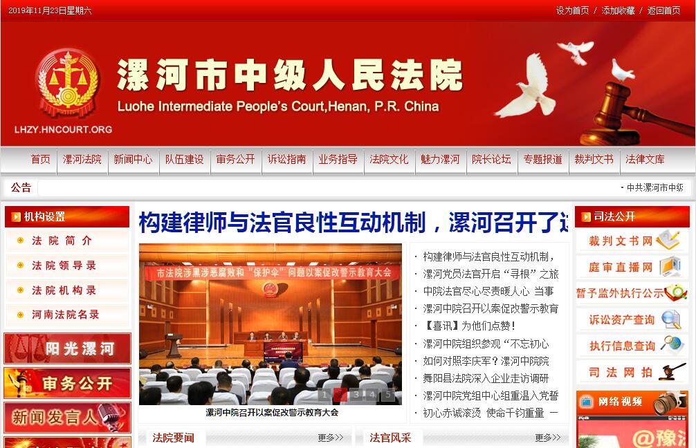 漯河市中级人民法院始建于1986年6月,辖区共有舞阳、临颍、郾城、源汇、召陵5个基层法院,19个人民法庭。全市法院现有干警707名,其中法官352名,占干警总数的49.79%。漯河中院是最高法院2007年授予的首届“全国优秀法院”,共有干警182名,其中法官98名,占干警总数的53.85%。设有立案庭、刑一庭、刑二庭、刑三庭、民一庭、民二庭、民三庭、民四庭、行政庭、执行局、赔偿办、审监庭12个业务庭局,办公室、政治部、法警支队、技术处、行管处、审管办、研究室、监察室8个行政综合部门,法官分院、后勤服务中心2个事业单位,另有考核办、评查办两个内设部门。近年来,我市法院在市委的正确领导、市人大的有力监督下,坚持以“三个至上”为工作指导思想,以“为大局服务、为人民司法”为工作主题,全面加强执法办案、队伍建设、司法改革和基层基础工作,各项工作实现了新发展、新进步。我院先后荣获首届“全国优秀法院”、“全省人民满意政法单位”、“全省社会矛盾化解先进单位”、“省级文明单位”等称号,全市法院共有3个集体、16人次受到国家级记功和表彰,为我市经济社会快速发展做出了积极贡献。2012年5月漯河中院新一届班子组建后,按照市六次党代会提出的决策部署,围绕进一步提升案件质效、进一步提升队伍素质、进一步提升司法管理、进一步提升法院形象,以抓作风、强素质、促公正、树形象、上台阶为着力点,坚持在深化上下功夫、在落实上见成效、在巩固上求提高,不断深化案件流程管理机制、综合绩效考评机制、干警奖惩激励机制建设,致力打造公正型、高效型、廉洁型、服务型法院,努力实现建一流班子、带一流队伍、造一流环境、创一流业绩、树一流形象的奋斗目标。