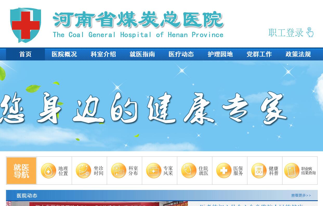 河南省煤炭总医院(河南省煤矿职业病防治医院)于1982年7月经原中国煤炭工业部批准成立,2009年隶属河南省工业和信息化厅主管,是一所集医疗、预防、康复、教学、科研为一体的国家二级综合医院。医院先后被确定为中国煤矿尘肺病防治基金会定点医院、河南省省直职工基本医疗保险定点医院、河南省省直工伤保险定点医院、河南省职业病诊断定点医院、河南省职业健康检查定点医院、河南省新型农村合作医疗保险定点医院、郑州市基本医疗保险定点医院、郑州市医疗(康复)定点医院、郑州市120急救站等。医院占地面积七十亩,建筑面积3.6万平方米,交通便利,环境优雅,设备先进,技术力量雄厚。医院设有急诊科、内科、外科、骨科、康复科、妇产科、儿科、五官科、肛肠科、泌尿科、理疗科、口腔科、预防保健科、中医科、尘肺病科、影像科、功能科、检验科、职业健康体检科、社区卫生服务站等二十多个临床医技科室。为提升医院服务能力,医院先后配置有东芝16排CT、核磁共振、数字胃肠机、四维彩超、经颅多谱勒诊断仪、DR机、全自动生化分析仪、呼吸机、动态心电监护仪、全自动脑中风预警系统等现代化医疗设备百十多种。医院规模床位300张,在岗员工297人,专业技术人员结构合理,其中正高职称6人;副高职称18人;中级职称67人。医院非常重视专业技术人员的培训,定期按计划选拔优秀人员外出培训,不断提高专业技术人员的业务水平,取得了良好的社会效益与经济效益。医院的服务理念是:“患者至上,满意为准”。我们愿以合理的检查、合理的用药、合理的治疗,为您提供“温暖、贴心、有尊严”的优质服务。