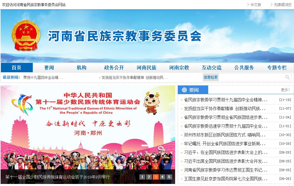 河南省民族宗教事务委员会,根据《中共中央办公厅、国务院办公厅关于印发〈河南省机构改革方案〉的通知》,河南省民族宗教事务委员会(以下简称省民族宗教委)是省政府组成部门,为正厅级,归口省委统一战线工作部领导。河南省民族事务委员会贯彻落实党中央关于民族、宗教工作方针政策和决策部署,在履行职责过程中坚持和加强党对民族、宗教工作的集中统一领导。其主要职责是:(一)拟订全省有关民族、宗教事务的地方性法规、规章草案和政策并监督实施。开展民族、宗教法律、法规和政策的宣传教育工作。(二)协调全省民族关系,推动依法保障各民族合法权益。处理涉及民族关系的有关事宜。做好城市民族工作及少数民族流动人口和流动穆斯林服务管理工作。做好涉疆服务管理工作。组织开展民族团结进步创建工作,承办民族团结进步表彰活动。(三)负责协调推动有关部门履行民族工作相关职责,促进民族政策在经济发展和社会事业有关领域的实施、衔接。负责开展少数民族经济发展统计分析和统计监测的有关工作,推进民族事务服务体系和民族事务管理信息化建设。(四)协同有关部门研究拟订全省促进少数民族和民族聚居地发展的政策和措施,配合有关部门做好少数民族扶贫工作。参与有关少数民族发展资金管理分配工作。(五)协调有关部门促进民族教育、科技、文化、卫生、体育等社会事业的发展。(六)依法保障公民宗教信仰自由,维护宗教团体和宗教活动场所的合法权益,保护宗教教职人员履行正常的教务活动,保护信教群众正常的宗教活动,对从事互联网宗教信息服务的内容进行审核。办理宗教团体需由政府解决或协调的各项事务。(七)依法管理全省宗教事务,促进宗教关系和谐,引导宗教界在法律、法规和政策范围内活动,配合有关部门防范和制止利用宗教进行非法、违法活动,抵御境外利用宗教进行渗透活动。联系、培养宗教界人士,指导宗教团体依法依章开展工作、加强自身建设。指导基层宗教事务部门依法管理宗教事务,组织实施宗教行政执法工作。(八)负责宗教方面的外事归口管理工作,指导有关部门和宗教界开展对外以及对港、澳、台地区的宗教交往活动,参与涉及民族和宗教对外宣传工作。负责全省伊斯兰教朝觐事务管理工作。(九)协助有关部门做好全省少数民族干部培养、教育和使用工作。(十)分析和研判涉及民族关系、宗教关系和谐稳定等方面的舆情。(十一)指导全省民族、宗教事务部门的工作,协助各地政府及时处理民族、宗教方面的突发事件、重大事件和影响社会稳定的因素。(十二)负责少数民族古籍搜集、整理和出版等工作。(十三)完成省委、省政府交办的其他任务。