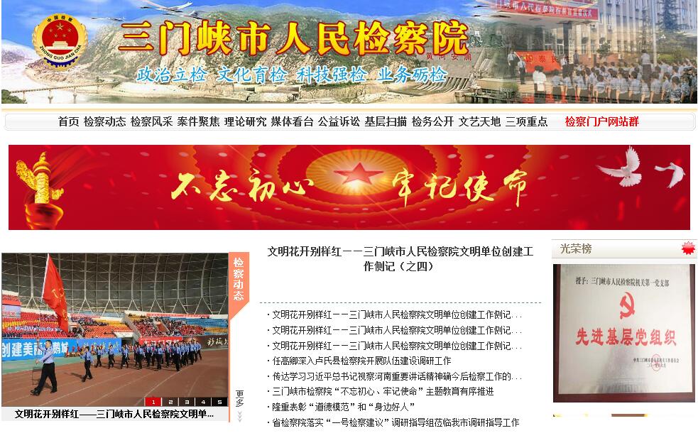 三门峡市人民检察院是河南省19个省辖院之一,1986年随三门峡区划调整而设立。现下辖2个区院(湖滨区院、陕州区院)、2个市院(灵宝市院、义马市院)、2个县院(卢氏县院、渑池县院)等6个基层院,共有463人,其中员额检察官155人;市院机关有110人,其中员额检察官36人。三门峡市院是全省体量较小的市分院之一,但是长期以来,在省检察院和三门峡市委的正确领导下,在历届党组班子和全体干警的不懈努力下,全市检察工作取得长足发展。2016年3月,市院新的领导班子成立后,在继承中发展,在开拓中进取,在改革中提升,检察工作不断呈现新局面。文明创建形成品牌。2017年11月,市院机关第五次被命名为“全国文明单位”,已连续保持16年,是全省检察系统中创建时间最早、蝉联时间最长的市级院;6个基层院也都是省级文明单位,是全市为数不多的文明单位系统。社会评价总体较好。市院在2016年8月被表彰为“全省人民满意的公务员示范单位”,2017年8月被评为“河南省职工职业道德建设标兵单位”,2018年4月荣获“全省五一劳动奖状”。司法水平不断提升。2016年以来,全市检察机关持续保持涉检赴省进京零上访,9起案件分别被评为全国、全省精品案件或优秀案件,市院、湖滨区院和灵宝市院分别被高检院命名为“全国文明接待室”和“全国文明接待示范窗口”,陕州区院被高检院和团中央联合确定为“全国青少年维权岗”。基层基础更加扎实。灵宝市院被表彰为“全国先进基层检察院”,荣获“全国五一劳动奖状”;全市派驻监管场所检察室全部被评定为国家一级、二级规范化检察室。特别是2016年以来,市院直接与地方党委协调,帮助基层院解决正副科级54人;协调市县两级政府批准,为全市检察机关招录聘任制书记员137人。队伍建设成效明显。2016年以来,全市有10名干警被评为全省检察机关业务标兵或办案能手,36个集体、50名个人获省级以上表彰。