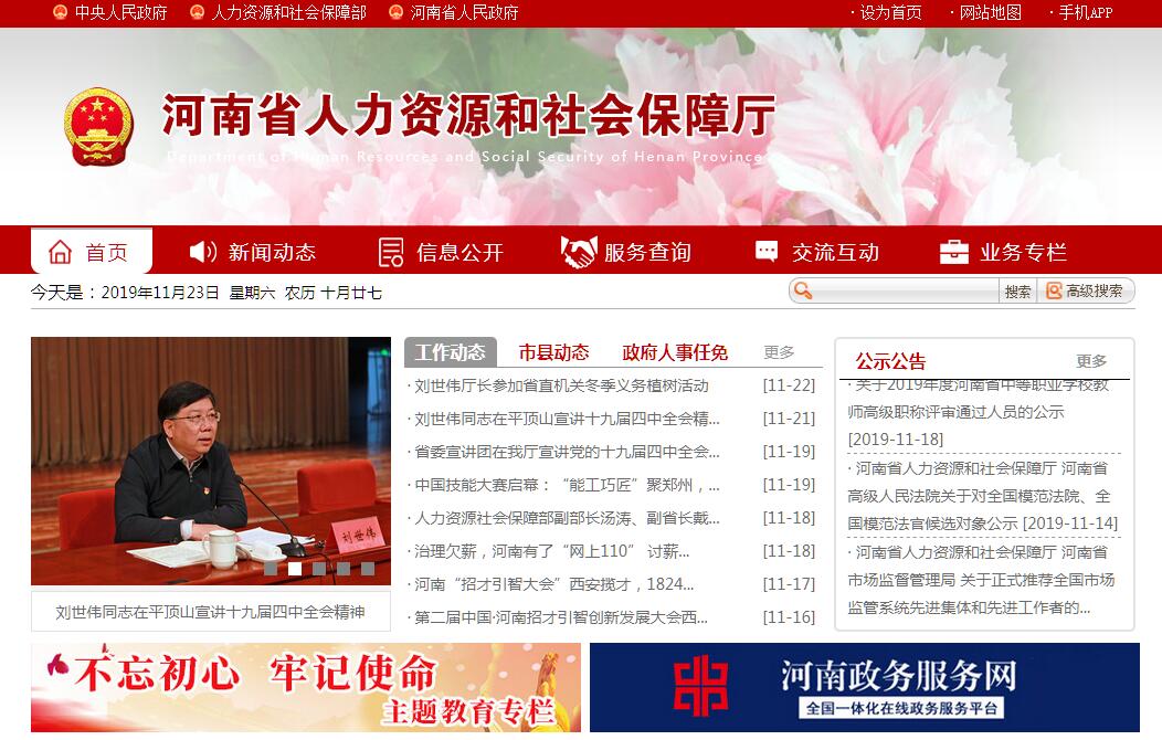 河南省人力资源和社会保障厅是省政府组成部门,为正厅级。根据《中共中央办公厅、国务院办公厅关于印发〈河南省机构改革方案〉的通知》,河南省人力资源和社会保障厅贯彻落实党中央关于人力资源和社会保障工作的方针政策和决策部署,在履行职责过程中坚持和加强党对人力资源和社会保障工作的集中统一领导。其主要职责是:(一)贯彻执行国家人力资源和社会保障法律、法规、政策,拟订全省人力资源和社会保障事业发展规划、政策,承担有关地方性法规和规章草案起草工作,并组织实施和监督检查。(二)拟订全省人力资源市场发展规划和人力资源服务业发展、人力资源流动政策,推动建立统一开放、竞争有序的人力资源市场体系,促进人力资源合理流动和优化配置。(三)负责全省促进就业工作,拟订全省统筹城乡的就业发展规划和政策,完善公共就业创业服务体系,统筹建立全省面向城乡劳动者的职业技能培训制度,拟订全省就业援助制度,牵头拟订全省高校毕业生就业政策。会同有关部门拟订高技能人才、农村实用人才培养和激励政策。(四)统筹推进建立全省覆盖城乡的多层次社会保障体系。拟订养老、失业、工伤等社会保险及其补充保险政策和标准。拟订养老保险全省统筹办法和全省统一的养老、失业、工伤保险关系转续办法。组织拟订养老、失业、工伤等社会保险及其补充保险基金管理和监督制度,编制相关社会保险基金预决算草案,参与拟订相关社会保障基金投资政策。会同有关部门实施全民参保计划并建立统一的社会保险公共服务平台。(五)负责全省就业、失业和相关社会保险基金预测预警和信息引导,拟订应对预案,实施预防、调节和控制,保持就业形势稳定和相关社会保险基金总体收支平衡。(六)统筹拟订全省劳动人事争议调解仲裁制度和劳动关系政策,完善劳动关系协商协调机制,依据国家工作时间、休息休假和假期相关规定以及特殊劳动保护政策制定实施细则并监督实施。组织实施劳动保障监察,协调劳动者维权工作,依法查处重大案件。(七)牵头推进深化职称制度改革,拟订全省专业技术人员管理、继续教育和博士后管理等政策,负责高层次专业技术人才选拔和培养工作,拟订吸引留学人员来豫工作或定居政策。组织拟订全省技能人才培养、评价、使用和激励制度。完善职业资格制度,健全职业技能多元化评价政策。(八)会同有关部门指导全省事业单位人事制度改革,按照管理权限负责规范事业单位岗位设置、公开招聘、聘用管理、考核奖惩等人事综合管理工作,拟订事业单位工作人员和机关工勤人员管理政策。(九)协助有关部门做好机关公务员录用、公开遴选、公开选调等考试的考务组织工作;会同有关部门组织落实国家表彰奖励制度,综合管理省委、省政府表彰奖励工作,承担全省评比达标表彰和厅局级表彰等工作,根据授权承办以省委、省政府名义开展的表彰奖励活动,承办部分省管领导干部的行政任免手续。(十)会同有关部门拟订全省事业单位人员和机关工勤人员工资收入分配政策,建立全省企事业单位人员工资决定、正常增长和支付保障机制。拟订全省企事业单位人员、机关工勤人员福利和离退休政策。拟订全省机关、事业单位工勤人员技术等级考核政策。(十一)会同有关部门拟订全省农民工工作的综合性政策和规划,推动相关政策落实,协调解决重点难点问题,维护农民工合法权益。统筹指导全省农民工就业创业和发展家庭服务业促进就业工作。(十二)完成省委、省政府交办的其他任务。