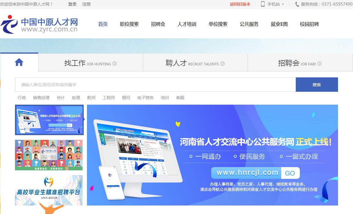 中国中原人才网是河南省人力资源和社会保障厅下属河南省人才交流中心(河南省人才市场管理办公室、河南省大中专毕业生就业指导中心)的唯一官方网站。中国中原人才网立足河南、辐射全国,竭诚为个人提供最新最准确的企业职位招聘信息,为企业提供人才信息,帮助个人求职者与企业搭建最佳的沟通平台。河南省人才交流中心(河南省大中专毕业生就业指导中心、河南省人才市场管理办公室)隶属河南省人力资源和社会保障厅,是参照公务员管理的正处级事业单位。负责管理中国中原毕业生人才市场(河南人才市场)、河南经营管理者市场和省人才交流协会日常工作。负责流动人员的人事政策咨询,接转和管理流动人员人事档案,为人事代理人员提供身份认定、代办入户、档案工资记载、职称资格考评、代办养老和医疗保险、出国(境)政审、出具考研证明等服务。负责流动党员管理。为高校毕业生提供就业服务,办理超择业期和非普通高等教育毕业生就业手续,收集、整理、发布毕业生供求信息,开展毕业生就业指导工作。市县人才交流业务指导。中心内设办公室、行政部、财务部、人事代理服务部、档案管理服务部、就业创业服务部、人才交流服务部、流动党委办公室、继续教育服务部、网络技术服务部10个部(室)。