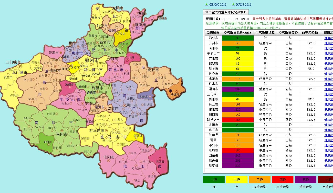 河南省城市空气质量实时数据试发布。