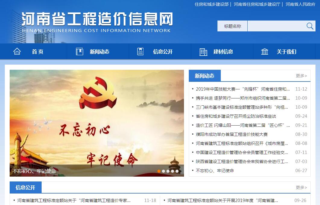 | 网站简介: 河南省工程造价信息网由河南省建筑工程标准定额站、河南省注册造价工程师协会主办。 |