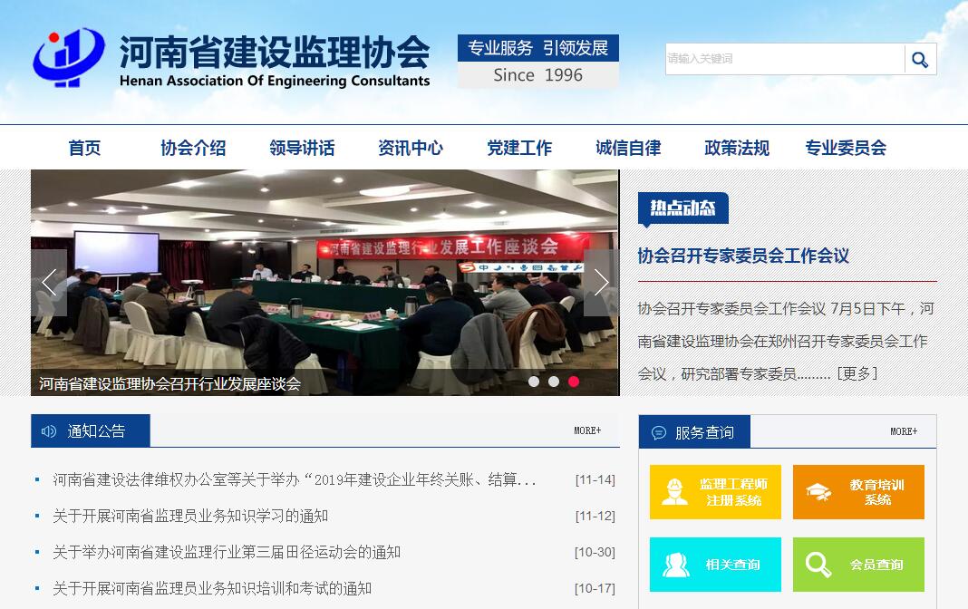 河南省建设监理协会,HenanAssociation of Engineering Consultants(缩写HAEC),成立于1996年10月,登记主管部门是河南省民政厅,业务主管部门是河南省住房和城乡建设厅。河南省建设监理协会根据章程,以遵守国家法律、法规和有关政策文件,协助建设行政主管部门做好建设工程监理及相关服务的管理工作,提高监理队伍素质和行业管理水平,沟通信息、反映情况,热情为会员单位服务,维护行业利益和会员的合法权益为宗旨,实施行业诚信自律和自我管理,在提供政策咨询、开展教育培训,搭建交流平台,开展调查研究,创办报刊网站、建设行业文化,维护公平竞争,促进行业发展等方面,积极发挥协会作用。经过20年的创新发展、积累完善,现已形成规章制度齐备,部门机构齐全、运作模式成熟的现代行业协会组织。现有专职工作人员12人,协会设秘书处、专家委员会和诚信自律委员会,秘书处下设综合办公室、培训部、信息部联络部和行业发展部。自建会以来,河南省建设监理协会秉承热情服务、排忧解难的办会理念,不断提高行业协会整体素质,打造良好的行业形象,增强工作人员的服务能力,将全省监理企业凝聚在协会这个平台上,引导企业对内相互交流扶持,对外抱团发展;引领行业诚信奉献,实现监理行业的社会价值;大力加强协会的平台建设,带领企业对外交流,同外省市兄弟协会、企业沟通交流,实现资源共享,信息共享,共同发展;扩大河南监理行业的知名度和影响力,使监理企业对协会平台有认同感和归属感;创新工作方式方法,深入开展行业调查研究,积极向政府及其部门反映行业和会员诉求,提出行业发展规划等方面的意见和建议;积极参与相关行业政策的研究、制定和修订;推动行业诚信建设,建立完善行业自律管理约束机制,规范会员行为,协调会员关系,维护公平竞争的市场环境。新时期,新形势。根据国家对行业协会的改革思路, 河南省建设监理协会将按市场化的原则、理念和规律,开门办会,努力建设新型行业协会组织,为创新社会管理贡献力量。同时,依据河南省民政厅和住建厅的要求,协会将极力提升行业治理能力,完善行业治理体系,积极做好各项准备工作,适应行政管理体制改革、转变政府职能对行业协会提出的新要求、新挑战。奉献,服务,分享。河南省建设监理协会将继续努力适应新形势的要求,继续建立和完善以章程为核心的内部管理制度,健全会员代表大会和理事会制度,继续加强自身服务能力建设,充分发挥行业协会在经济建设和社会发展中的重要作用。