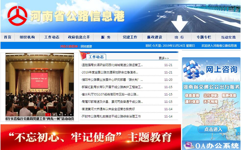 河南省交通运输厅公路管理局主要职责:1、认真贯彻执行党和国家关于公路建设、养护、管理工作的方针、政策、法令,参与制定我省公路工作政策、法规、实施意见、办法、措施。2、参与编制公路发展规划、中长期计划和年度计划,指导建设项目可行性研究编报工作,负责公路系统统计、交通量调查工作,公路行业统计预测和信息引导工作。3、负责全省一般新建、改建、改善公路工程设计、预算审批、日常施工管理工作。受厅委托,参与或负责一般工程的招投标、工程质量监督、验收工作。4、负责抓好全省(除高速公路以外)公路通行费征收、使用、管理工作,严格收支两条线、专款专用、确保还贷。5、负责编报全省以工代赈计划,负责编制县乡道路规划及年度计划、负责项目的设计、审批、行业管理工作,加快县乡公路建设步伐。6、负责全省公路系统通信网工作。7、负责全省一般公路工程、养护质量监督、检测工作,配合厅检测部门搞好全省公路检测实施网建设和公路部门三级试验检测管理工作。8、负责全省公路绿化和路政管理工作,维护路产、路权。9、组织公路系统安排科研计划项目及项目实施过程中的协调工作,配合省厅做好科研项目管理、推广应用新技术、新工艺、新材料、新设备、加快科研成果转化为生产力步伐。10、负责全省公路部门的财务管理和财务审计工作,严格财经纪律,提高投资效益。11、负责全省公路系统职工教育、各类专业技术人员培训及局属单位领导班子建设,干部职工的管理工作。12、负责全省路用设备材料、物资管理、制定施工现场物资管理办法,储存、管理战略钢材。13、负责编报公路统计报表,定期公布公路养护、工程施工,通行费征收等计划完成情况,向上报机关和有关部门提供及时、准确的统计数字和分析报告。14、指导公路部门精神文明建设和职工队伍建设,加强思想政治工作,开展各项社会主义劳动竞赛,增强职工凝聚力、向心力。