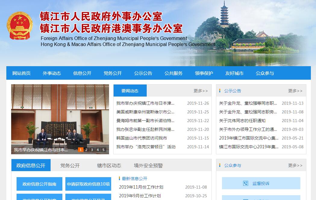 镇江市人民政府外事办公室负责贯彻落实中央关于外事工作的方针政策和省委、市委的决策部署,在履行职责过程中坚持和加强党对外事工作的集中统一领导。其主要职责是:(一)贯彻执行党和国家对外方针政策和法律法规,落实省委、省政府和市委、市政府有关外事工作的指示和决定,负责政策指导、业务考核、监督检查工作,归口管理、统筹协调全市各领域对外交流与合作,起草外事工作的地方性法规、规章草案,拟订相关政策规划。(二)研究分析各国发展动态和政策走向,围绕我市经济建设、社会发展和对外开放,为市委、市政府提供外事工作决策的建议。(三)贯彻执行中央对香港、澳门的政策规定,统筹协调和归口管理我市与香港、澳门特别行政区往来工作。(四)统筹安排并承办市委、市人大常委会、市政府、市政协领导同志的出访和国内外事活动事项。(五)接待来我市访问的党宾、国宾和其他重要外宾。承办外国有关人员来访事宜。指导全市重要外事活动的礼宾工作。会同有关部门做好涉外参观单位的建设工作。(六)承担我市与外国有关领事机构、国际组织的业务联系和交涉工作。审核管理在我市举办的国际会议。(七)负责全市因公出国(境)工作的归口管理、协调服务和监督工作。在授权范围内,审核或审批相关人员因公临时出国(境)事项,承担我市因公出国(境)人员的证照申办业务。会同有关部门落实外事纪律及保密制度。(八)承办我市对外交往事务,归口管理我市与外国友好城市和其他单位结好与交往事宜。指导我市民间对外交往工作。承担授予外国人荣誉称号、名誉职务和给予重要奖励等有关工作。(九)指导有关部门管理来我市的外国人工作,依法保障来我市外国人的合法权益。负责海外侨务工作。指导、协调、管理我市社会组织对外交往事宜。会同有关部门协调处理重要涉外事件和案件,协调指导我市境外机构、公民安全与合法权益保护工作。指导全市涉外应急事务处理。(十)负责我市外事干部和涉外人员的教育培训工作。会同有关部门进行对外宣传和群众性外事教育。(十一)主管来我市采访的外国记者事务。(十二)代管市人民对外友好协会。(十三)完成市委、市政府交办的其他任务。