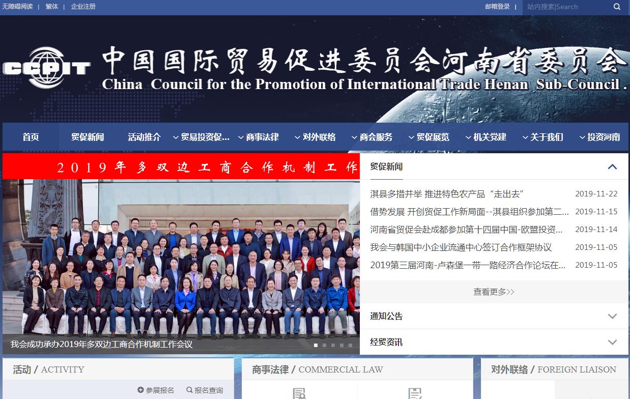 中国国际贸易促进委员会河南省委员会(简称河南省贸促会)成立于1984年8月,是在河南省人民政府和中国国际贸易促进委员会领导下的由河南省经济贸易界有代表性的人士、企业和团体组成的全省性对外贸易与投资促进机构。经河南省人民政府和中国国际贸易促进委员会批准,1988年同时使用中国国际商会河南商会的名称。两个机构的同时使用意味着贸促会被赋予了双重职能,既是一个河南省政府直属的国际经贸促进机构,又是一个拥有2000多家会员的地区性国际商会组织。河南省贸促会/河南国际商会不仅在全省18个省辖市及部分行业中组建了地方或行业贸促支会,还在全省吸纳了一大批具有代表性的企业会员、团体会员和个人会员,有35位知名企业家在国际商会担任副会长,从而形成了覆盖全省的组织体系;河南省贸促会、河南国际商会同世界各国、各地区的经贸团体开展全方位的交往,并同国际上众多的金融、法律、工业产业、经贸公司、咨询服务、旅游、展览等各界组织和人士建立了广泛的联系,同数十家境外知名商协会组织签订了合作协议;加之以省政府相关部门负责人和省辖市主管副市长组成的贸促委员会,河南省贸促会、河南国际商会已经初步建立起联系世界、联系政府、联系企业的三大网络。依靠相对丰富的网络渠道资源、高效优质的服务、办事严谨的作风,二十年来,在河南省政府和国家贸促会的领导下,借助社会各界的支持和帮助,河南省贸促会按照“促进国际贸易;促进利用外资;促进企业国际化经营;促进多种形式的中外经济技术合作”的方针,根据全省经济建设和改革开放的需要调整战略,强化职能,拓展工作领域和服务范围,努力为全省“开放带动主战略”服务,为全省经济建设服务,为企业服务,成为河南省联络国际与国内、政府与企业的桥梁和纽带。在促进对外贸易、利用外资、引进国外先进技术和开展各种形式的中外经济技术合作活动方面为河南省的经济发展作出了积极的贡献。