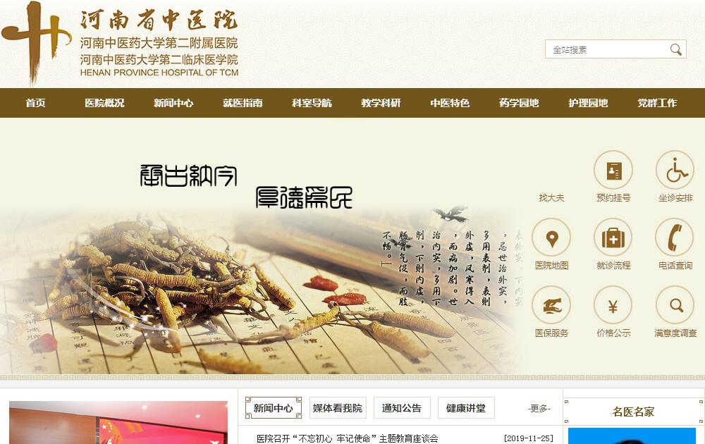 河南省中医院(河南中医药大学第二附属医院)始建于1985年,是一所集医疗、教学、科研、预防、保健、康复为一体的现代化综合性三级甲等中医院;是省医保、市医保(含离休)、铁路医保(含离休)、省离休、城乡居民医保(原新农合)、省工伤医疗保险定点医疗机构,是河南省内异地就医、全国跨省异地就医首批试点医疗机构;为国家中医临床研究基地建设单位、全国首批中医全科医师培训基地、全国中医药适宜技术推广基地、全国中医药传承创新工程项目建设单位、国家区域中医(专科)诊疗中心建设单位、河南省中医(专科)诊疗中心建设单位。医院现有职工2400余人,其中享受国务院特殊津贴专家、全国名中医、全国名老中医学术经验继承工作指导老师、河南省省管专家、河南省名中医、博士生导师及硕士生导师142人,正副主任医师264人;担任省级学会任职副主任委员以上及国家级学会任职常务委员以上共150人次。经过三十多年的建设发展,目前医院已形成“一个院本部,两个分院区,三个门诊部”的发展格局。院本部位于郑州市东风路,是郑州市北区最大的综合性医院;两个分院区,即高新区院区(河南省中西医结合肿瘤医院)和迎宾路院区;三个门诊部,即21世纪社区门诊部、富士康门诊部和城东路门诊部。医院开放床位2000张,临床医技科室设置齐全,有急诊、ICU、内、外、妇、儿、骨伤、五官、针灸科、推拿科、皮肤科、名医堂、治未病科等60余个临床医技科室。医院诊疗设备精良,拥有3.0T核磁共振、宝石CT、大型C臂、DR、全自动生化流水线、全数字化乳腺机、四维彩超等高、精、尖诊疗设备,能满足现代检查治疗的需要。医院重视内涵建设,着力提高专科诊疗水平,拥有国家临床重点专科5个,国家中医药管理局重点专科10个,国家中医药管理局重点研究室1个,国医大师唐祖宣工作室、全国名老中医药专家传承工作室9个。大力提升急诊、外科诊疗能力,在中西医结合治疗大病、急危重症方面已形成独特优势,截至2019年,急救创伤中心已连续6年荣获郑州市先进急救站荣誉称号。医院突出中医药优势,设立名医堂、名医工作室,发挥全国名中医、全国名老中医学术经验继承工作指导老师、河南省名中医的优势,开展名医传承工作;成立治未病科,集养生保健、康复、治疗为一体,开展中医体质辨识和中医体检评估,形成完善的中医药预防健康服务体系。各临床科室设立中医综合治疗室,门诊设立中医综合治疗区,广泛应用中医医疗技术。医院高度重视中药饮片质量工作,通过严格的制度保障患者用上高质量中药饮片。医院还成立了“精品中药房”,选用优质道地药材规范炮制,饮片质量上乘。医院坚持科技兴院,承担国家级、省部级科研课题,以科研促临床。近5年来科研立项426项;近三年来,承担省部级以上科研项目80项,其中国家自然科学基金16项;发表论文3000余篇,其中SCI收录论文80篇;出版著作350部;发明专利55项,成果88项,其中省部级成果16项。作为河南中医药大学临床教学医院,每年承担3000余名本科生、研究生的临床教学任务。设置有中医学、中医学(全科医师方向)、中医专升本、中医养生学和医学影像技术专业等,其中中医专业为教育部高等学校特色专业、专业综合改革试点专业。有1个博士学位授予点、10个硕士学位授予点、1个河南省博士后研发基地;有16个学科,其中国家中医药管理局重点学科5个,河南省第八批重点学科8个。医院坚持“以医疗为中心,教学科研为两翼”的发展思路,树立“诚信•爱”核心发展理念,遵循“一切为了病人”的办院宗旨,秉承“承古纳今,厚德为民”的院训,以精益求精的技术,严格高效的管理,给患者提供优质、高效、便捷、安全的医疗服务。医院先后荣获“省级文明单位标兵”“爱婴医院”“全国医学教育系统卫生文化建设先进单位”“河南省医院行风建设先进单位”“河南省人民满意医院”“河南省卫生系统新闻宣传先进单位”“河南省中医药文化建设先进单位”“河南省中医药科普工作先进单位”郑州市“五一劳动奖状”等荣誉称号。