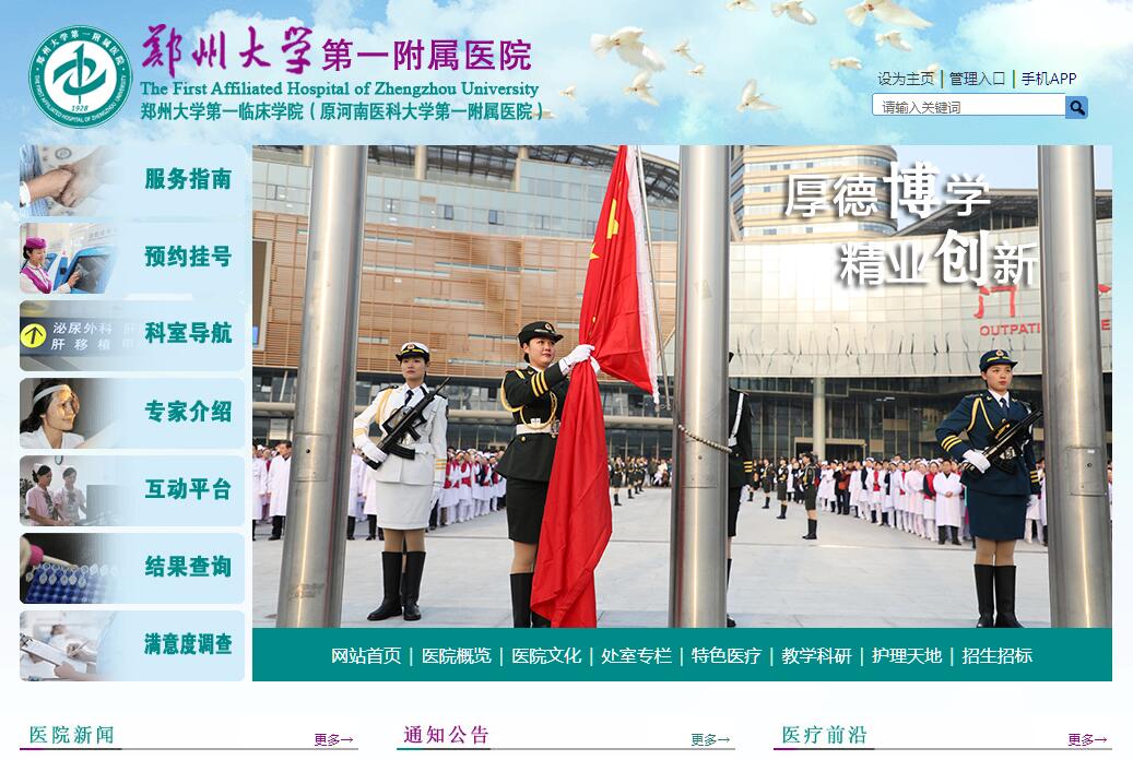 郑州大学第一附属医院始建于1928年9月,其前身为原河南中山大学医科。1930年医科改为医学院。1931建立省立河南大学附设医院。1942年更名为国立河南大学附附属医院。1952年更名为河南医学院附属医院。1958年从开封迁址郑州,更名为河南医学院第一附属医院。1985年更名为河南医科大学第一附属医院。2000年原郑州大学、郑州工业大学、河南医科大学三校合并,医院正式命名为郑州大学第一附属医院。2012年成为省部共建医院。2017年临床医学成为国家“双一流”建设学科。医院是集医疗、教学、科研、预防、保健、康复为一体,具有较强救治能力、较高科研水平和国际交流能力的三级甲等医院,先后被评为全国文明单位、全国“百佳医院”、全国卫生计生系统先进集体、全国医院信息化建设先进单位、全国县级医院帮扶示范基地、中国PTC突出贡献团队奖、全国优质护理服务优秀医院、全国医院后勤管理先进集体、全国医院文化建设先进单位等荣誉称号。目前,医院有河医、郑东和惠济3个院区,实行三个院区差异化发展、同质化管理、标准化建设和规范化运行。医院有河南省口腔医院、河南省眼科医院、河南省基因医院,郑大一附院儿童医院、肿瘤医院、心血管病医院、脑血管病医院、生殖与遗传专科医院、耳鼻喉医院、器官移植中心、消化病医院、肾脏病医院12个院中院,总占地面积682亩,临床医技科室95个,病区239个。 医院着承担脑血管病、器官移植和呼吸与危重症三个国家区域医疗中心建设。近年来,医院制定了“做细做优、高质量可持续发展”发展战略,全力建设“一流医院、一流学科”,临床医学目前ESI全球排名达到1.87‰。医院运营通过全面实施“五升五降”管理,实现了高质量良性发展。全院有在职职工12,409人,医疗卫生技术人员11,168人,其中正高级职称523人,副高级职称899人,中级职称4733人,具有博士学位的人员1647人、硕士2727人;有院士1人、特聘院士22人、长江学者2人、国家杰青2人、千人计划2人、百人计划2人、中原学者3人,享受国务院政府特殊津贴专家22人,省管优秀专家20人,省级厅级学术带头人39人,创新人才2人。目前,医院有在省级以上学术团体担任常委以上职务300余人。其中,中华医学会专业分会前任主委2人,主任委员1人,候任主委1人,副主任委员7人,常委22人。中国研究型医院学会专业分会主委2人。其他国家级学术团体主委6人(含会长),副主委(含副会长、副理事长)24人;国际学会专业分会委员3人。河南医学会各专业分会主委58人(含名誉主委10人),候任主委4人,副主委118人;其他省级学术团体主委(会长)48人(含名誉主委6人),候任主委3人,副主委(含副会长)47人。在国内外杂志担任编委以上职务的有300多人。医院临床医学是国家“双一流”建设学科,是河南省优势学科,食管癌防治是河南省特色学科,是国家肾脏临床医学研究中心核心单位。医院有国家临床重点专科建设项目20个,有河南省重点学科27个,重点培育学科2个。医院坚持瞄准国内外医学科技前沿,砥砺进取,开拓创新,以心、脑、肺、肝、肾、耳鼻喉、眼、妇产科等优势学科为支撑的大器官疾病综合诊治技术始终处于全省领先地位,达到国内一流水平。近年来,一大批具有国内国际领先水平的新技术在我院得到应用,其中应用“等位基因映射识别MaReCS技术”精准阻断染色体平衡易位向子代传递健康婴儿在我院成功诞生,“基于配型的人胚胎干细胞来源的神经前体细胞脑内移植手术”成功实施,填补国际空白。应用单细胞SNP微阵列技术进行胚胎植入前遗传学诊断试管婴儿诞生,应用体外激活休眠卵泡及卵巢组织自体移植技术治疗卵巢早衰试管婴儿诞生,亨廷顿舞蹈症应用“核映射及SNP芯片”联合诊断技术进行胚胎植入前遗传学诊断“双芯试管宝宝”诞生,“韩新巍式血管可回收支架”的临床应用,同卵双生活体供肝肝移植手术等,填补国内空白。肾脏活检与肾脏病理6000余例,居国内医院第一位。肝肾移植数量居国内医院前列,其中小儿肾移植例数连续四年居国内医院第一位。3D打印技术已在多个临床学科中成功实施。我院达芬奇手术机器人已成功开展泌尿、妇科、肝胆、胃肠、胸外等各类手术,标志着河南外科手术进入“机器人”时代。医院是河南省培养高级医疗卫生人才的临床基地,实行三个“院系合一”管理,临床医学系、医学检验系和口腔医学院与医院合一管理,承担着郑州大学临床医学系、医学检验系、预防医学系、口腔医学系及医学影像系的本科,硕、博研究生和留学生的教学任务。医院是全国住院医师规范化培训基地,是河南省住院医师规范化培训示范基地,是河南省专科医师培训中心,在院规培人员2000余人。临床医学和护理学是一级学科博士、硕士学位授权点,涵盖所有二级学科,有博士生导师113名,硕士生导师692名,年培养硕士、博士700余人,留学生200余人,年接收省内外进修人员2000余人。医院科研平台日臻完善,有院士工作站12个,博士后科研流动站3个,国家工程实验室1个,国家-地方联合工程实验室1个,国家临床药物试验机构40个,省级重点实验室9个,省级临床医学研究中心1个,省级工程技术中心10个,省级工程实验室13个,省级国际联合实验室1个,省级国际科技合作基地11个,厅级重点实验室38个,校(院)内研究机构21个,省级、高校、市级、院内科技创新团队70个,院