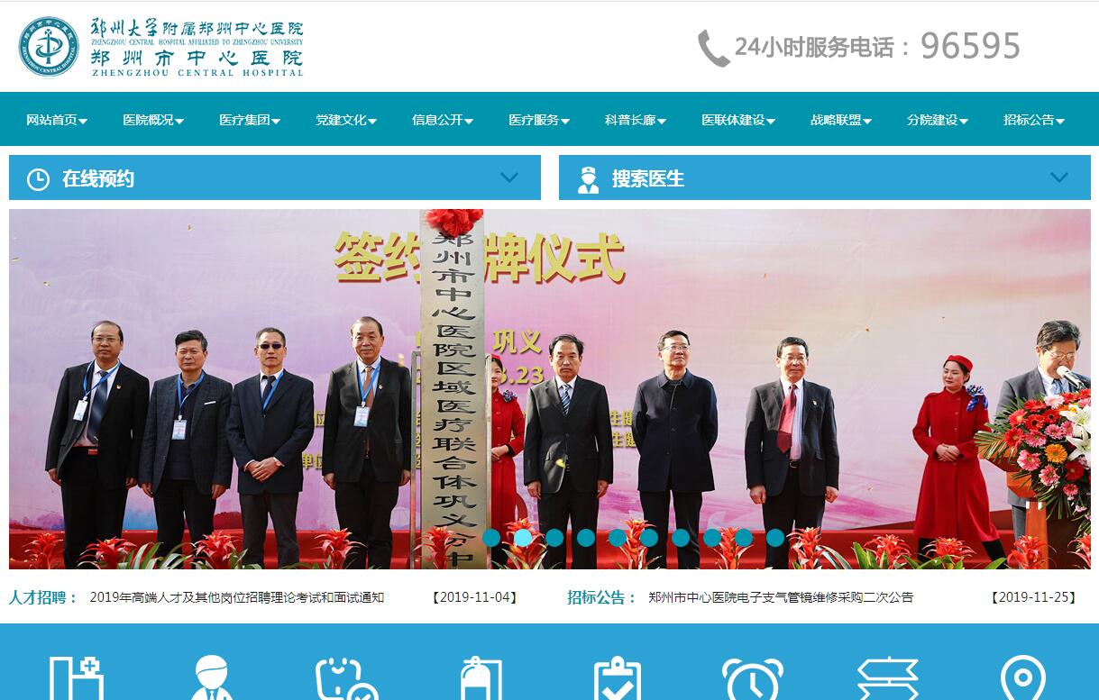 郑州市中心医院始建于1954年,是一所集医疗、教学、科研、预防保健为一体的综合性三级甲等医院。其前身是由中央纺织工业部抽调上海华东纺织管理局所属医院优秀专家组建的河南纺织管理局联合医院,1996年获批成为三级甲等综合医院,2011年挂牌郑州大学附属郑州中心医院,2016年成立郑州市中心医院医疗集团。集团现拥有高级职称340余人,博士硕士1200余人。医疗集团以桐柏路院区为核心,拥有高新院区、康复院区、豫欣院区、郑州市妇女健康管理中心及托管的郑州市中心医院新郑分院(新郑市公立人民医院),绿东村社区卫生服务中心、郑州市五棉社区卫生服务站2家社区卫生服务中心(站),与郑州市骨科医院、河南电力医院、二七区马寨镇卫生院、中原区须水镇卫生院合作建设急救站,形成了集团化发展的分级诊疗体系。医疗集团是国家级药物临床试验机构,20个GCP临床专业通过资格认定;拥有3个国家级中心:中国胸痛中心、国家高级卒中中心、中国心衰中心;4个省级医学重点学科:皮肤病学、心血管病学、康复医学、重症医学;6个省级重点培育学科:产科学、耳鼻咽喉科学、普通外科学(乳腺外科)、呼吸病学、内分泌学、急诊医学;3个省级实验室:河南省呼吸与重症医学重点实验室、河南省分子肿瘤学医学重点实验室和心血管精准医疗河南省工程实验室;4个市级医学重点学科:骨外科学、妇科学、麻醉药理学、消化病学;9个市级重点培育学科:神经病学、口腔颌面外科学、内科学其他学科(心脏康复)、老年医学、实验诊断学、外科学其他学科(肝胆胰外科学)、妇产科学其他学科(生殖内分泌与遗传医学)、口腔医学其他学科(口腔修复)、医学影像学(超声诊断医学);2个市级中医类重点学科:中医老年病、康复科;3个市级中心:郑州市创伤救治中心、郑州市危重孕产妇救治中心、郑州市肺结节诊疗中心。2018年,胸痛中心荣获中国胸痛中心年度质控金奖;卒中中心荣获全国“示范高级卒中中心”、“五星高级卒中中心”荣誉,创伤救治中心成为全国严重创伤规范化救治培训中心河南分中心,心衰中心成功通过认证成为中国心衰中心。集团先后荣获“全国百姓放心示范医院”、 “全国人文爱心医院”、“全国最佳志愿服务组织”、“全国改善医疗服务示范医院”、“全国巾帼文明岗”、“中国最佳医院管理团队奖”、“中国医疗机构最佳雇主锐意进取奖”、“全国医院后勤保障与建设先进单位”、“河南省文明单位”、“河南省人民满意医院”、“河南省中原健康先锋岗”、“河南省文明服务先锋岗”、“河南省医院创新管理先进单位”等荣誉称号。