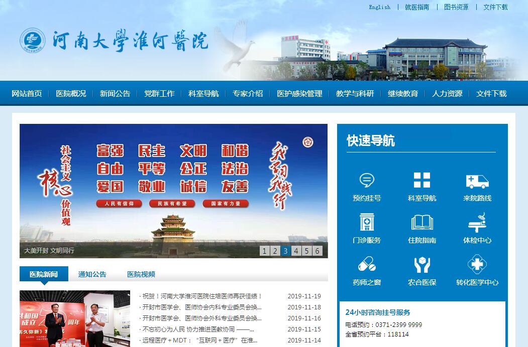 | 网站简介: 河南大学淮河医院位于开封市包北路8号,医院总占地面积150亩,拥有南北两个院区,创建于1955年,是一所集医疗、教学、科研、预防、保健于一体的国家综合三级综合医院,是开封市医保定点医院。医院设有38个临床专业科室,9个医技科室,70多个专科和专病门诊,18个临床教研室。临床医学为一级学科专业硕士学位授权点,第八批一级学科河南省重点学科。有7个二级学科教育厅重点学科,4个河南省卫生厅临床医学重点学科,2个国家级培训基地,2个国家级疾病防治基地。拥有包括美国GE16排320排CT共3台,包括西门子3.0T核磁共振在内的磁共振成像仪共2台,美国GE血管造影机共2台,瑞士伊尔直线加速器,数字化X线成像系统,西门子围产型四维彩超和飞利浦心脏四维彩超多台,血液分析流水线2套,大型全自动生化分析仪,准分子近视眼治疗仪等大型检测、诊断治疗仪器。目前医院已建立了以HIS为中心的电子病历系统,PACS系统和LIS系统在淮河医院南北两个院区间及科室实时传输,可以浏览CR、DR,胃肠造影图像和CT、MR、DSA影像,所有的影像数据都可以光盘为介质保存起来。 |