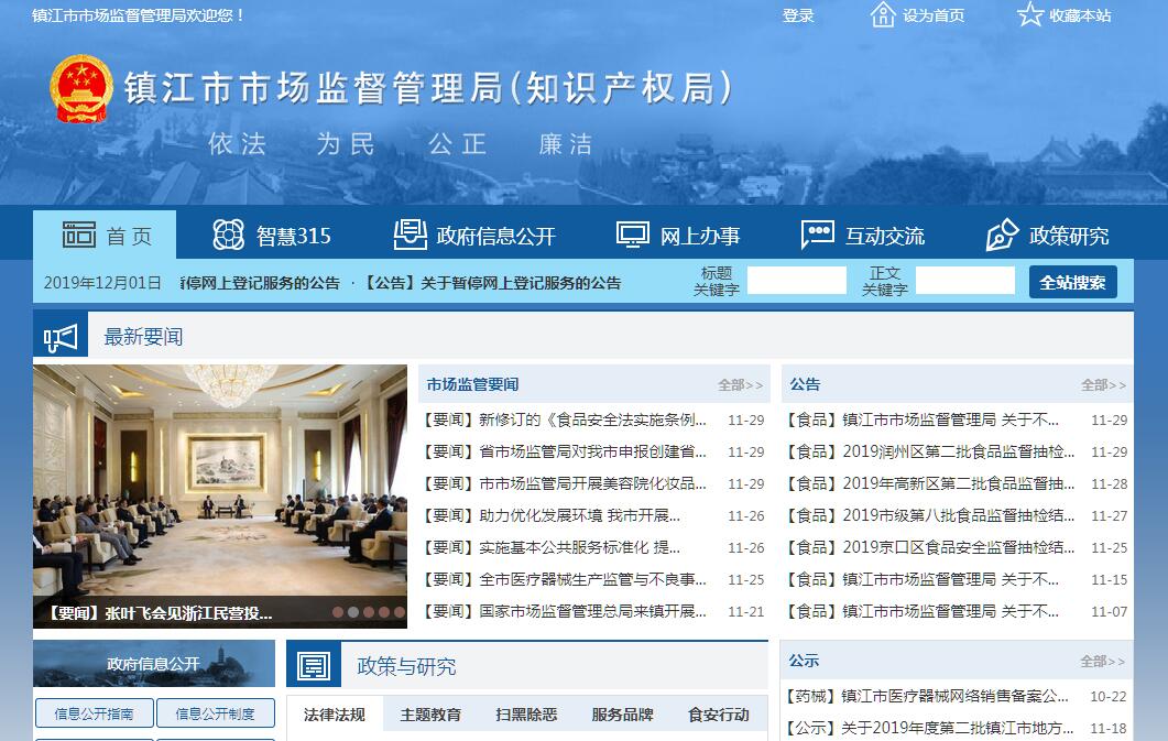 根据《省委办公厅省政府办公厅关于印发〈镇江市机构改革方案〉的通知》(苏办〔2019〕5号),经市委、市政府批准,组建镇江市市场监督管理局。镇江市市场监督管理局是市政府工作部门,为正处级,加挂市知识产权局牌子。镇江市市场监督管理局负责贯彻落实中央关于市场监督管理(含药品监督管理、知识产权,下同)工作的方针政策和省委、市委的决策部署,在履行职责过程中坚持和加强党对市场监督管理工作的集中统一领导。其主要职责是:(一)负责市场综合监督管理。贯彻执行国家、省有关市场监督管理的方针政策和法律法规,制定全市市场监督管理规范性文件。组织实施质量强市战略、食品安全战略、标准化战略、知识产权战略和知识产权强市建设,拟订并组织实施有关规划,规范和维护市场秩序,营造诚实守信、公平竞争的市场环境。(二)负责市场主体统一登记注册。承担依法和依授权登记的各类市场主体的登记注册和监督管理。指导全市各类企业、农民专业合作社和从事经营活动的单位、个体工商户以及外国(地区)企业常驻代表机构等市场主体的登记注册和监督管理工作。建立市场主体信息公示和共享机制,依法公示和共享有关信息。加强信用监管,推动市场主体信用体系建设。(三)负责组织和指导市场监管综合行政执法工作。指导全市市场监管综合行政执法队伍整合和建设,推动实行统一的市场监管。组织查处重大违法案件。规范市场监管行政执法行为。(四)配合反垄断统一执法。统筹推进竞争政策实施,组织指导实施公平竞争审查制度。依委托开展反垄断执法调查工作,配合对垄断协议、滥用市场支配地位、滥用行政权力排除限制竞争和经营者集中行为进行反垄断调查及其他相关工作。(五)负责监督管理市场秩序。拟订全市商品交易市场监督管理的制度措施。依法监督管理市场交易、网络商品交易及有关服务的行为。负责协调、指导、监督菜市场主体准入和市场交易秩序管理,牵头实施菜市场长效管理考评工作。组织指导查处价格收费违法违规、不正当竞争、违法直销、传销、侵犯商标专利知识产权和制售假冒伪劣行为。指导广告业发展,监督管理广告活动。指导查处无照生产经营和相关无证生产经营行为。强化消费者权益保护,指导消费环境建设工作。指导镇江市消费者协会开展消费维权工作。(六)负责宏观质量管理。拟订实施全市质量发展的制度措施。组织实施国家、省和市质量奖励制度,推进品牌发展战略。建立并统一实施缺陷产品召回制度,组织实施产品防伪工作。(七)负责产品质量安全监督管理。负责统一组织全市生产、流通领域产品质量监督抽查工作,组织协调产品质量安全风险监控工作。组织实施质量分级、质量安全追溯制度。指导工业产品生产许可管理。(八)负责特种设备安全监督管理。综合管理特种设备安全监察、监督工作,监督检查高耗能特种设备节能标准和锅炉环境保护标准执行情况。按规定权限组织调查特种设备事故。(九)负责食品(含保健食品、特殊食品,下同)药品(含中药、民族药,下同)安全监督管理综合协调。组织制定并实施全市食品药品安全重大政策。推动建立落实食品药品安全企业主体责任、地方党委政府负责的机制。建立健全食品药品安全重要信息直报制度。负责食品药品安全应急体系建设,组织指导食品药品安全事件应急处置和调查处理工作,督查事故查处落实情况。承担市食品安全委员会的具体工作。(十)负责食品安全监督管理。建立并组织实施覆盖食品生产、流通、消费全过程的监督检查制度和隐患排查治理机制,防范区域性、系统性食品安全风险。推动建立食品生产经营者主体责任落实机制,健全食品安全追溯体系。组织实施和监督管理食品生产经营企业许可工作。(十一)负责食品药品安全抽检监测工作。组织实施食品、药品、医疗器械和化妆品安全监督抽检、风险监测、核查处置和风险预警、风险交流工作。指导实施不合格食品、药品、医疗器械和化妆品核查、处置、召回等工作。(十二)负责药品、医疗器械和化妆品经营、使用环节监督管理。负责监督实施药品零售、医疗器械经营的许可、检查和处罚,以及化妆品经营和药品、医疗器械使用环节质量的检查和处罚。监督实施执业药师资格准入制度,负责全市执业药师注册管理工作。(十三)负责药品、医疗器械和化妆品标准的监督实施和质量管理。监督实施国家药典等药品、医疗器械、化妆品标准和分类管理制度,配合实施国家基本药物制度。依职责监督实施药品、医疗器械和化妆品经营、使用质量管理规范。建立药品不良反应、医疗器械不良事件、化妆品不良反应和药物滥用监测体系,组织开展监测和处置工作。(十四)负责统一管理全市计量工作。贯彻实施国家计量制度,推行法定计量单位,管理计量器具及量值传递和比对工作,负责规范、监督商品量和市场计量行为。(十五)负责统一管理全市标准化工作。组织制定并实施全市标准化战略和规划,负责市级地方标准的立项、编号、发布,组织实施标准以及对标准制定、实施进行监督。推动参与国际标准化活动。(十六)负责统一管理全市检验检测工作。组织实施全市检验检测监督管理工作,推进检验检测机构改革,完善全市检验检测体系。规范检验检测市