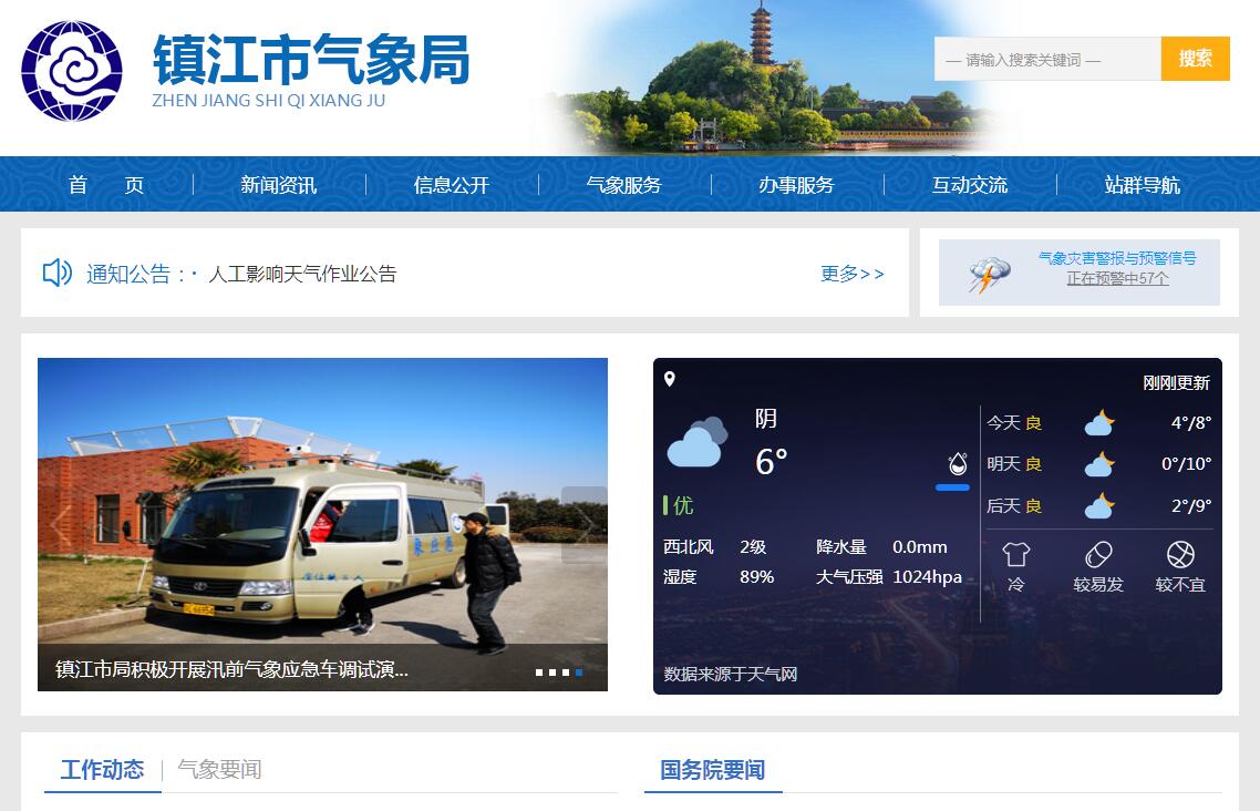 | 网站简介: 镇江市气象局是归属镇江市的一个气象局,主要职能为预测气象、预报天气等。位于江苏省镇江市梦溪路40号。全市有地面气象观测站4个(其中丹徒区气象局为国家基本气象观测站,丹阳、句容以及扬中市气象局为国家一般气象观测站);区域自动气象站34个,其中城市站(温度、湿度、风向、风速、雨量、特O地温、紫外线)1个,雨量站2个,4要素中尺度站(温度、风向、风速、雨量)9个,5要素中尺度站(温度、湿度、风向、风速、雨量)2个,温雨站(温度、雨量)20个。全市目前形成了以人机交互处理系统为平台,以数值天气预报产品为基础,发展到综合应用多种技术方法的天气预报业务。预报时段由短期和中长期天气预报扩展到临近、短时、短期、中期、长期天气预报。预报内容由晴雨、极端气温、风向、风速,3-7天天气趋势预报,增加了雨量量级、落点、灾害性天气现象、灾害性天气警报、防御措施等。气象服务:全市目前有面向社会的公众服务、面向党政领导的决策服务,面向专业服务对象的专项服务以及人工影响天气和防雷减灾服务等。 |