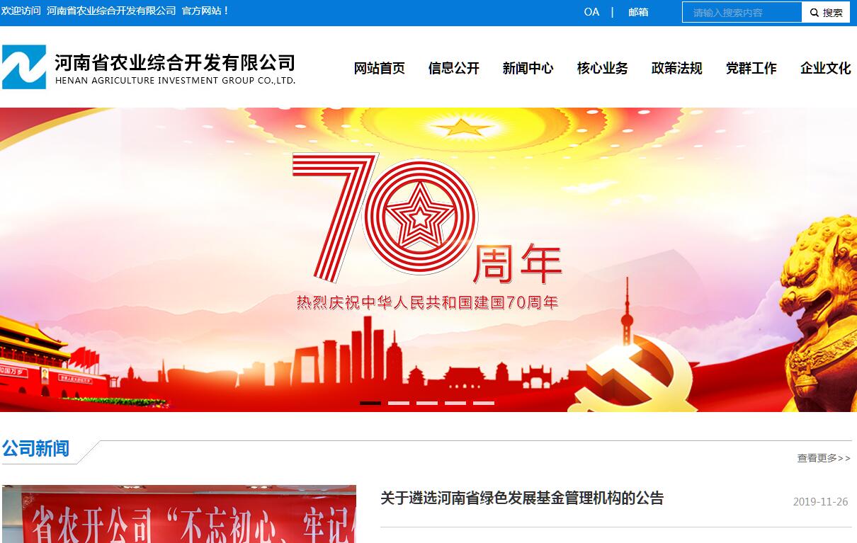 河南省农业综合开发有限公司(下称“省农开公司”)成立于1992年。是河南省人民政府授权经营的国有独资农业政策性投资机构,是自主经营、独立核算、自负盈亏的独立法人。省政府委托省财政厅代管、履行政府出资人职责,全额持有公司资本金。近年来,省农开公司紧紧围绕“以农为主、多业发展;产融结合、投融为主”的总要求,以现代农业投资为主线,以涉农金融类产业发展为支撑,以资本运营业务深化为推手,充分发挥投融资功能,加快建成产融结合、合力联动的农业投资控股集团。公司按照《公司法》和有关规定于2009年6月经省政府国资委批准设立了董事会、经营管理层;按照党章规定建立党委,设纪委、工会。其中,董事会由5位董事组成,公司党委由6名委员组成,经营管理层由6人组成。公司领导人员职数8人,分别为董事长(兼党委书记)1人、总经理1人、副总经理3人、总会计师1人、党委副书记(兼纪委书记)1人、工会主席1人。省农开公司本部现有员工40人,内设办公室、人力资源部、党群工作部、投资管理部、发展规划部、计划财务部、风控内审部、资本运营部、纪检监察室等9个部室。主要参控股子公司有:河南农投产业投资有限公司、河南农开产业基金投资有限责任公司、河南农投金控股份有限公司、河南高科技创业投资股份有限公司、河南省农业融资租赁股份有限公司、河南中原联创投资基金管理有限公司、河南省现代服务业基金管理有限公司、河南农开投资担保股份有限公司、河南省扶贫搬迁投资有限公司、河南省豫农置业有限公司、河南豫财宾馆、河南农投置业有限公司、河南粮食产业投资担保有限公司、郑州市联创融久小额贷款股份有限公司、联创融久商业保理有限公司、中原农业保险股份有限公司、中原资产管理有限公司、巩义浦发村镇银行股份有限公司、濮阳市市区农村信用合作联社、巩义市农村信用合作联社、卫辉市农村信用联社、中原银行股份有限公司等。上市公司有莲花健康、科迪乳业、豫金刚石、华英农业、隆华科技等;投资和受托管理基金包括国家新型产业创投基金、省涉企改革基金、省政府引导基金等方面共30支,合计受托管理资金约2500亿元,基金投资项目中,目前在新三板挂牌的企业近70家;参控股公司涵盖了农业产业投资业务以及服务现代农业的基金、担保、创投、小贷、银行、保险等行业。未来,农开将成为一家全方位服务农业发展的现代化大型农业投资集团。截至2018年底,公司注册资本300亿元,投资规模超过3000亿元。省农开公司功能定位:省委省政府现代农业大省建设的投融资综合服务商,拓展财政职能的重要平台、财政支持现代农业转型发展的有效载体。省农开公司经营宗旨:秉承“立足农业、产融结合、专业化经营、市场化运作、服务政府建设现代农业大省重大战略”的经营宗旨,以现代农业产业投资为主线,以涉农金融为支撑,以资本运营为推手,运用政府和市场两种资源,不断完善投融资功能,增强综合实力,为农业产业化龙头企业和新型经营主体提供全方位投融资服务,加快构建现代农业产业体系,推进农业现代化,服务我省城乡统筹发展和四个河南建设。具体体现在“四个平台”功能:一是服务省委省政府现代农业发展战略的平台,二是服务省财政涉农经营性资金使用方式改革的平台,三是对接中央和市县农业投融资机构实现上下联动的平台,四是以市场化手段引导社会资本服务现代农业的平台。未来六年,公司将着力打造“五大板块”:一是做大做强股权投资业务,打造支持农业产业化龙头企业发展的股权投资板块;二是做大做强农业担保体系,打造支持新型农业经营主体发展的农业担保业务板块;三是做大做强“三农”保险服务体系,打造现代农业保险业务板块;四是探索参与承接省财政支持“三农”基础设施建设的政策,打造“三农”基础设施建设业务板块;五是完善业务链条,增强集团协同效应的功能板块。省农开公司经营范围:一是为省政府重大部署、重点项目、重大专项事业提供投融资支持,构建具有中原特点的现代农业产业体系;二是支持培育农业龙头企业,通过产业化带动专业大户、家庭农场、农民合作社等新型经营主体,支持现代农业发展;三是围绕新型农业现代化,提供产业基金、担保、保险、小额贷款等农业投融资服务,对农村金融机构、地方金融机构实施股权投资;四是受托经营中央或省级财政扶持我省产业化、合作化、农村金融、科技创新等现代农业专项资金及粮食发展基金、创业投资基金、产业投资基金等;集合分散经营的涉农国有资产;五是省政府赋予的其他经营项目及国家法律允许的其他投资业务。