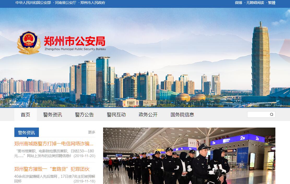 郑州市公安局主要职责:1、贯彻落实国家公安工作法律、法规和方针、政策,负责制定全市公安工作的政策、规定。2、掌握影响社会稳定、危害全市安全和社会治安的情报和动态,分析研究治安形势和刑事犯罪特点,制定预防、打击对策和措施。3、负责全市公安机关的侦查工作;负责重大刑事案件、市内危害国家安全的犯罪案件、重特大经济犯罪案件工作;负责跨县区以上重特大系列案件的侦破和全市性的集中打击、搜捕、堵截等工作。4、负责全市治安管理工作;负责处置重大治安事故和群体性事件,侦破重大治安案件。 5、负责出入境管理有关工作;负责管理国籍工作;负责全市出入境、持普通护照的外国人和香港、澳门特别行政区及台湾地区人员在我市居留、旅行的管理工作。6、负责全市消防工作;指导、监督、协调全市消防监督、火灾预防、火灾扑救和公安应急抢险救援工作。7、负责全市道路交通安全管理工作;负责重大活动和重要警卫任务的交通管制工作。8、负责全市公安机关对公共信息网络和国际互联网的安全保护、监察工作;负责信息安全等级保护工作。9、防范、处置邪教组织的违法犯罪活动。10、 组织、指导、协调对恐怖活动的防范、侦察工作。11、指导、监督全市公安机关依法承担的执行刑罚工作,指导、监督全市公安机关对看守所、治安拘留所、强制戒毒所、收容教育所的建设、管理工作。12、负责全市公安机关指挥系统、信息技术、刑事技术和行动技术的研究和建设工作;负责全市公共安全技术产品的鉴定和推广。13、负责拟订公安机关装备、经费标准;组织协调全市公安机关重大任务的警务保障工作。14、负责全市公安机关与市外、境外警察机构的业务交流与合作工作。15、负责全市公安消防、警卫部队建设工作,对武警支队执行公安任务及相关业务建设实施领导和指挥。16、拟订全市公安队伍管理监督规定;负责公安机关督察、审计、信访工作;负责全市公安队伍思想作风、工作作风建设工作。17、完成市政府交办的其他事项。