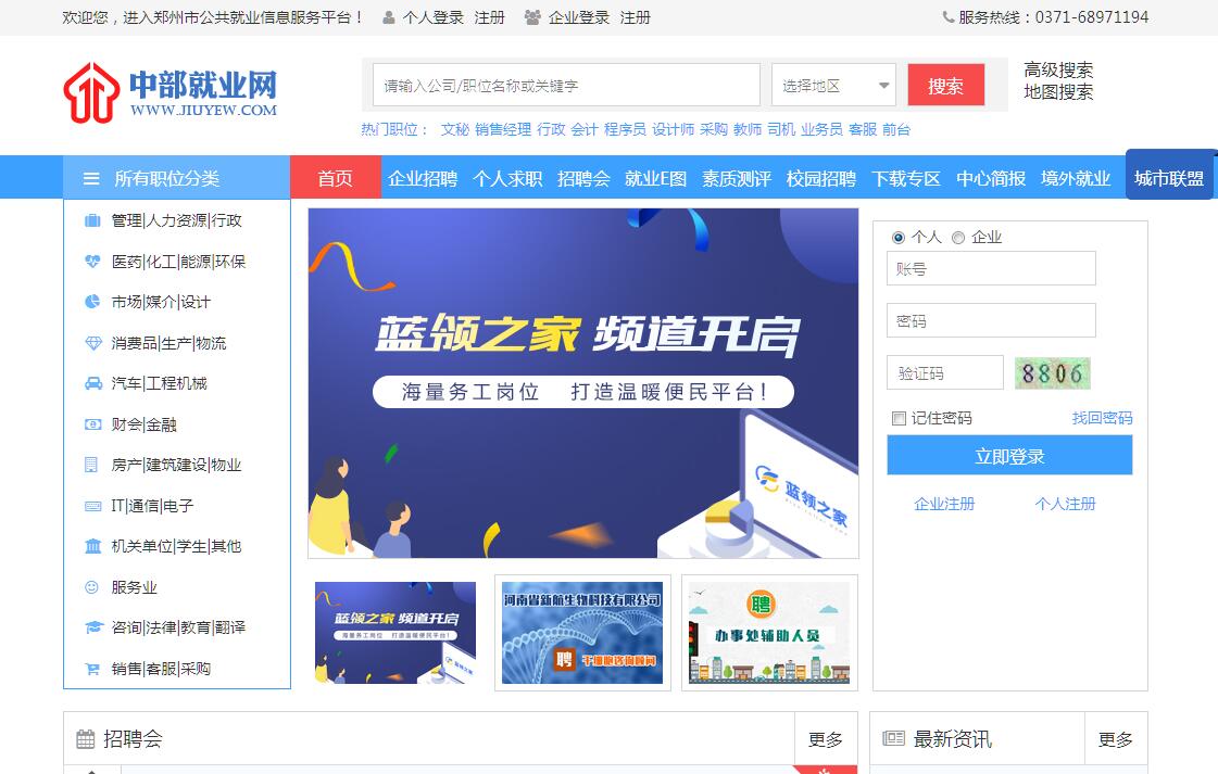 | 网站简介: 中部就业网隶属于郑州市职业介绍中心,成立于2003年,是国内较早的专业人才招聘网站,2013年在政府的大力支持下,中部就业网新版上线,在数据上实现了网站、业务软件统一、同步,在功能上增加了在线预订招聘会、地图找工作、二维条码找工作、自动短信提醒、手机wap站等多元化服务。快速增长的人才储备,不断完善的服务方式,以人为本的服务理念,使我们得到了各行业用人单位及求职者的好评与赞誉。 |