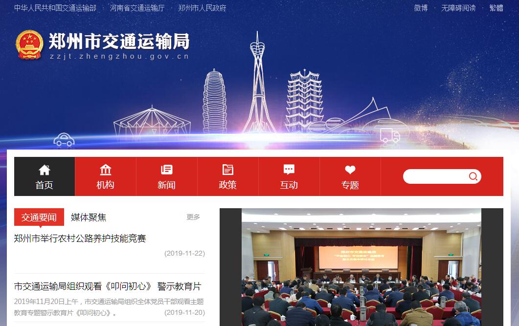 郑州市交通运输局是主管全市交通运输工作的市政府组成部门。其主要职责是:(一)贯彻执行国家、省、市有关交通运输工作的法律、法规和方针、政策;研究拟订全市交通运输发展战略;负责涉及全市综合运输体系的规划协调工作,会同有关部门组织编制综合运输体系规划,负责全市交通运输枢纽规划和管理;拟订地方性交通运输法规;负责全市交通运输行业的行政执法工作;负责交通运输行政复议和行政诉讼工作。(二)编制全市交通运输行业的中长期发展规划和年度计划并监督实施;编制全市交通基础设施、市域公共交通和区域综合运输等专项规划并组织实施;参与拟订全市物流业发展战略和规划,拟订有关政策和标准并监督实施;指导全市交通运输行业有关体制改革工作。(三)承担全市道路、水路运输市场监管责任。组织制定全市道路、水路运输有关政策、技术标准和运营规范并监督实施;负责全市道路客运、货运及有关设施规划和管理工作;负责全市城乡道路运输和出租汽车行业管理工作;负责全市轨道交通运营管理工作;负责市域内高速公路路政管理工作;负责法律、法规、规章规定的有关交通运输行业特许经营管理工作;负责全市机动车维修市场、机动车驾驶员培训的行业管理;建立完善交通运输服务体系,引导交通运输行业优化结构、协调发展。(四)承担全市水上交通安全监管责任。负责水上交通管制、国家规定的相关船舶及相关水上设施检验、登记;负责危险品运输监督、航道管理等工作。(五)负责提出全市交通运输固定资产投资规模和方向、市财政性资金安排意见,按规定权限审批、核准国家、省和市规划内及年度计划规模内固定资产投资项目。(六)承担全市交通运输工程建设市场监管责任。拟订全市交通运输工程建设和维护相关政策、制度及技术标准并监督实施;组织实施全市交通基础设施重点工程建设;协调市域内各类交通工程建设;负责工程质量、工程定额和安全生产监督管理工作;负责全市交通运输基础设施管理工作。(七)负责安全生产和应急管理工作。负责全市交通运输的综合协调工作,负责组织协调国家、省、市重点物资和紧急客货运输;负责辖区内高速公路及干线公路网运行监测和协调工作;负责辖区内交通运输应急指挥;组织协调全市地方交通战备工作;负责国防动员的有关工作。(八)负责全市交通运输信息化建设,监测分析运行情况,开展相关统计工作,发布有关信息。(九)制定全市交通运输行业科技政策、技术标准和规范并监督实施;组织重大科技开发,负责新技术、新工艺和新材料在交通运输行业的推广和应用,推动行业技术进步;负责全市交通运输行业专业技术、职业技能教育;指导全市交通运输行业协会、学会工作。(十)负责全市交通运输行业涉外工作。负责全市交通运输行业对外经济技术合作、引进利用外资工作,负责全市交通运输系统对外交流与合作。(十一)负责机关及所属单位机构编制、人事、社会保障等工作;指导全市交通行业职工队伍建设。(十二)做好已取消行政审批事项的服务和监管工作。(十三)承办市政府交办的其他事项。