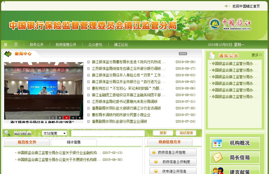 | 网站简介: 中国银行业监督管理委员会镇江监管分局(简称:镇江银监分局)设立于2003年12月16日,系中国银行业监督管理委员会的派出机构。镇江银监分局根据银监会和江苏银监局的授权,负责对镇江市银行业金融机构及其分支机构的设立、变更、终止和业务活动的监督管理;依法对金融违法、违规行为进行查处;审查和核准高级管理人员任职资格;统计有关银行业数据和信息;负责分局机关党的建设、纪检和干部管理工作。 |