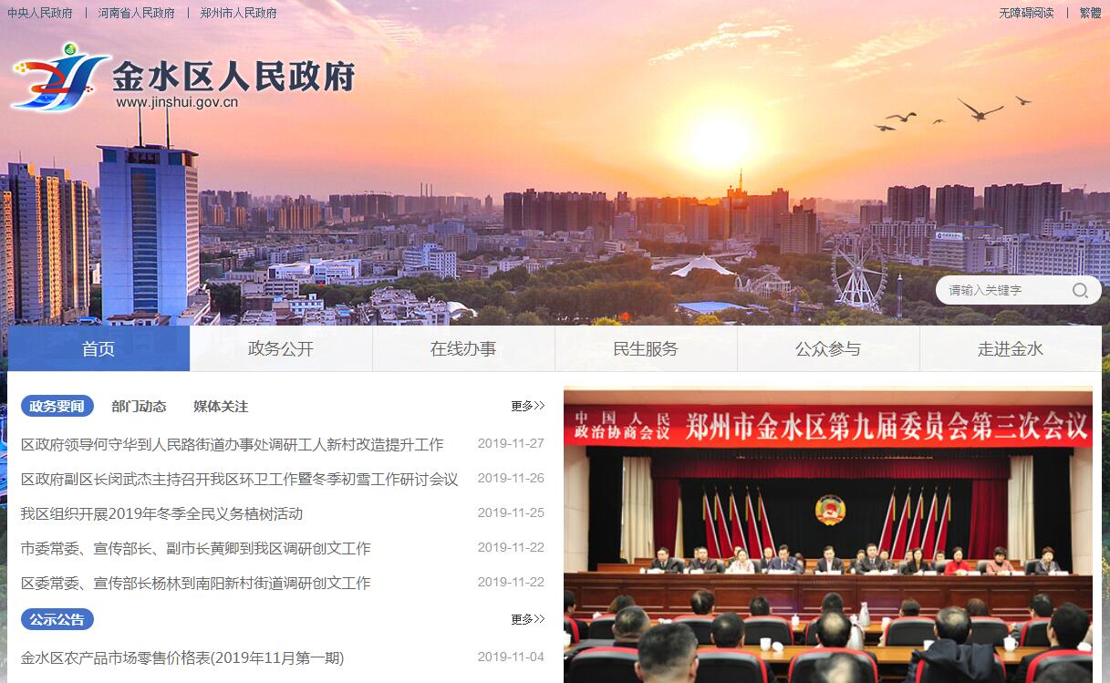 金水区位于郑州市东北隅,因发源于距今2800年前的金水河流经辖区而得名,辖区总面积136.66平方公里(其中城区面积78.37平方公里),常住人口131.6万,现辖17个街道、3个园区(金水科教园区、河南科技园区、国家知识产权创意产业试点园区)、40个行政村、162个社区。辖区经济繁荣、交通便利、设施先进、功能完善,拥有得天独厚的区位优势和较为优质的资源禀赋。金水区是河南省委、省军区和大部分省直单位所在地,是全省政治、经济、文化、金融、信息的中心城区,是全省首个地区生产总值迈入“1000亿俱乐部”和首个全面建成小康社会的县(市)区,是全省唯一一个同时纳入郑洛新国家自主创新示范区和中国(河南)自由贸易试验区的县(市)区,是全国创先争优先进区、科技进步先进区、公共文化服务体系示范区、计生优质服务先进区、和谐社区建设示范城区、全国综治工作先进集体和首批国家基础教育课程改革实验区。近年来,金水区紧紧围绕“实现两个率先、领跑中部城区发展”的奋斗目标,牢固树立新发展理念,着力推进经济总量和发展质量“两大提升”,优化中心城区、北部城区和科教园区“三大板块”,打赢新型城镇化、产业发展、开放创新和生态建设“四大战役”,实现便民服务设施、优质教育资源、优质医疗资源、公共文化服务和社会保障救助“五大覆盖”,努力在郑州建设国家中心城市征程中“挑大梁、走前头、做贡献”,实现了经济社会又好又快发展。2018年全年地区生产总值实现1378.8亿元、同比增长9.5%;财政总收入完成248.5亿元、增长10.8%;地方一般公共预算收入完成61.4亿元、增长10.7%,税收占比达到95%;服务业增加值完成1221亿元,社会消费品零售总额达730.9亿元、同比增长7%,全社会固定资产投资同比增长10.1%,主要指标全部位居中部城区前三。在2018年11月发布的《2018年中国百强区发展白皮书》中,金水区作为全省唯一上榜的城区,综合实力排名第25位,位居中部城区第一,全面形成了领跑中部城区发展决定性态势。2019年前三季度,全区地区生产总值完成1077.9亿元,同比增长7.8%;地方一般公共预算收入50.01亿元、增长6.32%;主要经济指标始终位于中部地区中心城区前列,保持了良好的强劲的发展势头。当前,全区上下正在紧紧围绕郑州国家中心城市建设,发挥优势、拉高标杆,加快实现领跑中部城区发展战略目标,奋力打造高品质现代化城区,努力在推动郑州国家中心城市建设中走在前列,为中原出彩、中部崛起作出贡献。
