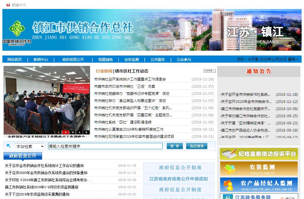 | 网站简介: 镇江市供销合作总社主要职能是:研究制定全市供销合作社发展战略和发展规划;组织指导下级社和企业为“三农”提供服务,发展供销合作经济;承担政府委托的任务,行使政府授予的行业管理职权;宣传贯彻各级党组织和政府有关农村经济工作和社会发展的方针政策,向政府和有关部门反映农民社员及供销合作社的意见和要求,维护各级供销社的权益;组织指导供销社及企业加强现代企业管理,确保社有资产有效运营;加强市直企业基层党组织建设,促进全系统精神文明建设。 |
