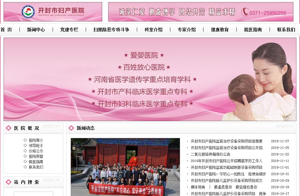日月如梭,岁月如歌,忆往昔,峥嵘岁月稠。90年的沧桑岁月,90年的励精图治,开封市妇产医院走过了90年的辉煌历程。开封市妇产医院始建于1928年,是我国较早的妇产医院之一。医院院本部位于鼓楼广场西侧,现有占地面积7000㎡,建筑面积16449㎡,固定资产近6000万元,年门诊、急诊、手术及住院病人均为我市本行业领先。作为豫东地区妇产专业的领头人,开封市妇产医院多年来一直致力于全市及周边地区妇女儿童的保健工作。随着就诊患者数量不断增加,医院现有床位已不能满足广大患者的需求,妇产医院在迎宾路13号成立了迎宾路院区并于2014年12月9日开始接诊患者。迎宾路院区位于汽车西站北侧,紧邻包公湖市场,占地面积近7000㎡,建筑面积近9000㎡,环境优美、交通便利、设备先进,配备了一流的专业技术人才队伍。开设有产科、妇科、男科、优生遗传、乳腺、生殖不孕等门诊科室,并设置有产科病区,暂开放床位100多张。病房配套设置完善,整洁舒适,能满足不同患者的诊疗需求。作为国家卫计委认定的中国宫颈癌防治工程定点单位、河南省新生儿重症监护网络成员,河南省医学遗传学重点培育学科、开封市产前筛查中心、开封市优生遗传学重点实验室、开封市医学遗传研究所、开封市产科临床医学重点专科、开封市妇科临床医学重点专科、开封市高危儿跟踪随访及早期干预基地、开封市孕产妇120急救站、开封市医保、新农合定点单位,医院干部职工始终秉承“以病人为中心”的服务理念,以“创建一流的质量、创建一流的服务、创建一流的职工队伍”作为推动医院和谐发展的出发点和落脚点,改革创新,开拓进取,务实苦干,现已建设成为拥有产科、妇科、新生儿科、乳腺科、医学遗传科、生殖不孕科、儿童保健科、中心实验室、妇女体检中心等40多个专业科室,集医疗、科研、教学、预防保健为一体的现代化妇产专科医院。医院担负着开封市及豫东地区妇产科疾病的诊治、优生优育、计划生育、围产保健等任务,是开封市基层医疗单位妇产科专业技术培训中心,河南省高等医学院校教育基地,医院学科齐全,诊治水平先进。医学遗传科医疗技术处于国内先进水平,迄今已发现世界首报染色体异常核型60例,居国际先进水平。产科、妇科、新生儿科、生殖不孕科、病理科等科室医疗技术分别处于省、市先进水平。产科、妇科均为开封市唯一的临床重点专科。医院除妇产科、乳腺科常规手术外,开展的气囊助产、无痛分娩,宫腹腔镜及阴道镜手术,LEEP刀手术、先天性无阴道成型术、广泛性子宫切除术、乳腺癌术中背阔肌乳房重建术、人工辅助生殖技术,染色体检查,产前诊断,PCR技术,新生儿遗传代谢性疾病筛查,基因诊断等技术均达到国内先进水平。医院拥有先进的腹腔镜手术设备、宫腔镜手术设备、阴道镜、LEEP刀手术设备、多功能心电监护设备、高端的全数字化实时四维彩超、新生儿听力筛查系统、高端基因杂交信号放大系统、乳腺高频钼靶X线机、全自动生化分析仪等医疗设备。病理科开展的电脑远程网络会诊,使患者不出开封便可享受到国内一流专家的服务,方便快捷。作为河南省十佳妇幼品牌医院,开封市妇产医院一贯重视优质服务,开展一系列人文化、温馨化、亲情化的服务。门诊设立综合服务台,开辟老弱病残患者绿色就医通道,帮助老弱病残患者挂号、看病、缴费、取药等,并解答他们的疑问,免费提供轮椅、供应开水、小件寄存等。帮助患者办理住院手续,并有专人护送至病区。设有“病人选医生”专栏。开展收费、划价一站式服务。在孕妇分娩全程中推广专人亲情化护理,采用分娩镇痛术减轻孕妇分娩痛苦。对出院病人实行电话回访制度。医院先后荣获首批爱婴医院、百姓放心医院、三八红旗集体,巾帼文明岗、省级文明单位、河南省医院行风评议先进单位、全省卫生系统行风建设先进单位、全省卫生系统“四五”普法暨依法执业集中教育先进集体、优秀医院、党风廉政建设优秀单位、市先进基层党组织、市青年文明号等220余项荣誉称号。是河南省技术、设备、服务好的公立妇产专科医院之一。开拓进取的妇产医院将继续引领开封市妇产专业向更快、更好的目标发展,为全市及周边地区妇女儿童的健康保驾护航。