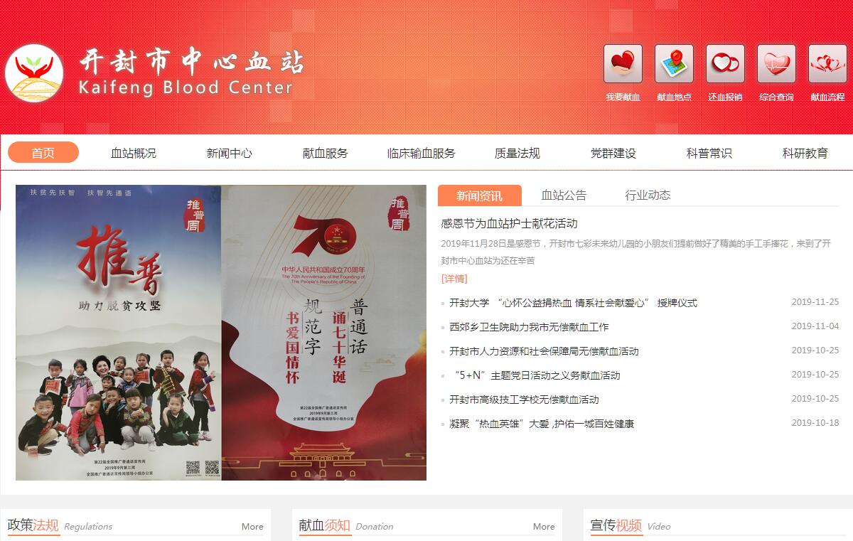开封市中心血站1996年10月入编建站,隶属开封市卫生和计划生育委员会,是全市唯一一家持有《采供血机构执业许可证》的专业采供血机构,是一所集采供血、医学科研、技术培训于一体的综合性事业单位,承担着全市540万人口的临床采供血任务,向临床提供有去白细胞悬浮红细胞、病毒灭活冰冻血浆、单采血小板、辐照血等多种血液成分制品,2016年献血人数达62339人次,年供血量33吨。血站建筑面积4500平方米,设置业务职能科室18个,现有职工170余人,其中专业技术人员比例75%,配置有先进的血液检测及血液研究专业设施和设备,为血站发展奠定了基础,血站多年来没有发生用血纠纷,开封市已连续九届荣获全国无偿献血先进城市。血站在市卫计委的正确领导下,认真贯彻落实十八届六中全会精神,全面执行从严治党,牢固树立“全心全意为献血者、医疗用血单位服务”的宗旨意识,紧紧围绕“抓中间、促两头”的战略方针,切实抓紧抓好血液质量管理和采供血工作,无偿献血宣传招募、临床供血、血液质量安全管理、实验室安全检测等工作成绩优异,献血人数逐年递增,确保了全市临床用血需要,全市临床用血100%来源于无偿献血,献血者和医疗用血单位满意率均达99%。在做好采供血业务工作的同时,血站加强精神文明创建,认真践行社会主义核心价值观,积极开展理想信念教育、扶贫帮困、学雷锋志愿服务活动、网络文明传播、文化体育活动等创建活动,全年,血站共开展志愿服务90余次,进行社会公益帮扶10余次,向社会公益机构、困难职工、社区贫困户和留守儿童等捐款捐物合计1.5万元。通过创建活动的开展,血站职工创建意识和文明素质不断提高。多年来,血站曾荣获省级文明单位、省级卫生先进单位、河南省中原健康先锋岗、河南省群众满意医疗卫生机构、开封市档案工作先进集体、开封市造血干细胞采集先进单位、开封市三八红旗集体、开封市卫计系统责任目标先进单位、卫计系统党风廉政建设先进单位、卫计系统优秀党组织等多项荣誉称号。血站的工作步伐越来越快,更新更高的山峰需要去攀登,血站不畏困难,唱响奉献之歌,架起生命之桥、为无偿献血事业发展崛起再创新绩,再立新功。