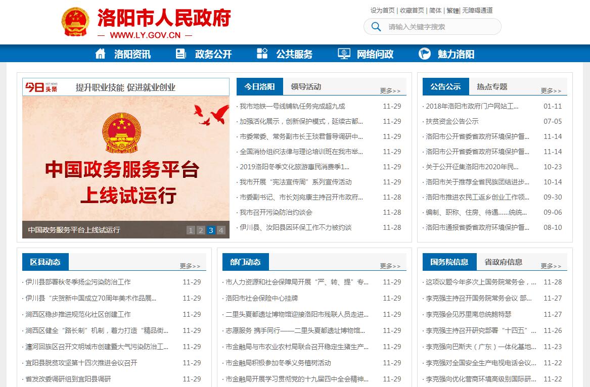 洛阳位于河南西部、黄河中游,因地处洛河之阳而得名,是国务院首批公布的历史文化名城和著名古都,省域副中心城市,也是中部地区重要的工业城市。现辖1市8县6区,2个国家级开发区、2个省级开发区、18个省级产业集聚区。总面积1.52万平方公里,其中市区面积803平方公里;总人口713.67万,其中市区人口224.93万,常住人口城镇化率57.6%。洛阳是一座底蕴深厚、名重古今的历史文化圣城。作为华夏文明的重要发祥地、丝绸之路的东方起点,历史上先后有13个王朝在洛阳建都,是我国建都最早、历时最长、朝代最多的都城。现有全国文物保护单位43处,馆藏文物40余万件。沿洛河一字排开的夏都二里头、偃师商城、东周王城、汉魏故城、隋唐洛阳城五大都城遗址举世罕见。龙门石窟、汉函谷关、含嘉仓等3项6处世界文化遗产,中国第一座官办寺院白马寺,武圣关羽陵寝关林,武则天坐朝听政、朝拜礼佛的明堂、天堂,以及定鼎门博物馆、天子驾六博物馆等数十家博物馆,无不彰显着洛阳厚重的文化底蕴。洛阳是儒学的奠基地、道学的产生地、佛学的首传地、玄学的形成地、理学的渊源地,各类文化思想在此相融共生,以“河图洛书”为代表的河洛文化是海内外炎黄子孙的祖根文源。洛阳还是全球华人的文化之根、祖脉所系,全球1亿客家人祖籍于此,中国70%的宗族大姓起源于此。作为丝绸之路的东方起点和隋唐大运河的中心,洛阳先后有6次进入世界大城市之列。洛阳是一座风光秀美、独具魅力的优秀旅游名城。现有5A级景区5家、4A级景区23家、3A级景区37家。“北方千岛湖”黄河小浪底风景旅游区、世界地质公园黛眉山、国家森林公园白云山、“北国第一溶洞”鸡冠洞、“山岳经典•十里画屏”老君山、“北国水乡”重渡沟,以及龙峪湾、天池山、西泰山、神灵寨等风景名胜,兼具南北风光之神韵。市区及周边分布着周山、龙门山、小浪底、上清宫等四大森林公园和隋唐城遗址公园,伊、洛、瀍、涧、黄五条河流纵横其间,长达20余公里的洛浦公园穿城而过。洛阳牡丹始植于隋,盛于唐,甲天下于宋,雍容华贵,国色天香,已有1500多年的栽培史,形成9大色系、10种花型、1200多个品种。一年一度的牡丹文化节已经成为蜚声中外的国家级文化盛会,跻身全国四大名会之一,入选国家非物质文化遗产名录,成为洛阳扩大对外开放、展示城市形象的重要平台。洛阳市被命名为“中国牡丹花都”。洛阳是一座工业基础雄厚、科技实力突出的现代化工业城市。“一五”时期全国156项重点工程有7项在此建设,工业对经济增长的贡献率达70%左右。现已形成先进装备制造、新材料、高端石化、电子信息、旅游业等五大主导产业,正在积极培育机器人及智能制造、新能源、生物医药、现代物流、电子商务、金融六大新兴产业,大力发展文化产业、科技服务、牡丹、健康养老、高效农业五大特色产业(简称“五强六新五特”现代产业体系)。拥有洛阳石化、中信重工、一拖集团、中铝洛铜等众多具有较强市场竞争力的大型企业集团。中移动(洛阳)呼叫中心、平安保险数据中心等一大批高端服务业项目落户洛阳。洛阳还是全国重要的科技研发基地和国家新材料产业基地、高端装备制造高技术产业基地、小微企业创业创新基地城市示范,郑洛新国家自主创新区顺利获批。现有部省级科研院所14家,国家级重点实验室7个、工程实验室3个,国家级企业技术中心13个、工程(技术)研究中心3个,各类研发机构900余家;两院院士6名,专业技术人员18万余人,科技人才密度高于全国、全省平均水平,在新材料、航空航天、电子信息等高科技领域居全国先进水平,高速铁路、载人航天、蛟龙号载人潜水器等一大批国家重点工程中都有“洛阳制造”和“洛阳技术”。洛阳是一座资源富集、功能完善的希望之城。洛阳自古为“九州腹地、十省通衢”,具有承东启西、纵贯南北的区位优势,是我国中西部地区重要的交通枢纽。陇海、焦枝等两大铁路干线,郑西高铁、连霍、二广、郑少洛、郑卢、洛栾、西南环城等高速公路与207、310、311、312等国道交织成网。洛阳机场是国内净空条件最好的二级机场,辟有北京、上海、广州、深圳、包头、昆明、大连、沈阳、重庆、杭州、成都、哈尔滨、石家庄、香港、曼谷等15个航点城市的定期航线。洛阳能源资源富集,境内已探明矿产资源76种,其中钼矿储量居全国首位,为世界三大钼矿之一;黄金产量居全国第三位。洛阳是重要的电力能源基地,总装机容量占河南省的五分之一;管道天然气已延伸至县域和产业聚集区。水资源总量达28亿立方米,是北方地区少有的富水城市。洛阳综合功能完善,是中西部地区重要的物流节点城市,现有一类航空口岸、二类铁路和公路口岸,边防检查、口岸查验、检疫机构齐全,是豫西地区出入境旅客集散中心和集装箱进出口集散中心。洛阳先后与160多个国家和地区建立了贸易关系,吸引了美国惠普、法国迪卡侬、正威国际集团、美国霍尼韦尔等25家世界500强企业,中兴通讯、恒大集团、万达集团、深圳华强集团、青岛啤酒集团有限公司等46家国内500强企业在洛投资。2018年,全市实现生产总值4640.8亿元,同比增长7.9%。洛阳市先后荣膺中国优秀旅游城市、国家园林城市、国家卫生城市、全国文明城市、国家森林城市、国家创新型试点城市、全国