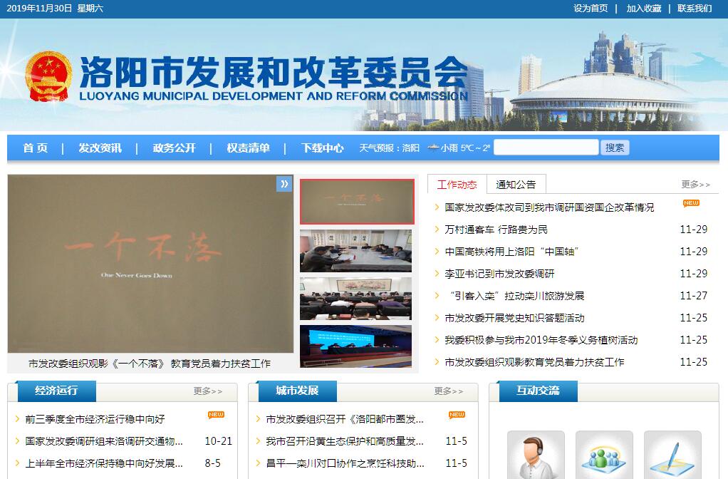 洛阳市发展和改革委员会,为市政府工作部门。其主要职责是:1.拟订并组织实施全市国民经济和社会发展战略、中长期规划和年度计划,统筹协调经济社会发展,研究分析经济形势,提出国民经济发展、价格总水平调控和优化经济结构的目标、政策,提出综合运用各种经济手段和政策的建议,衔接平衡区域性规划、各主要行业和部门的行业规划与专项规划,受市政府委托向市人大提交国民经济和社会发展计划的报告。2.负责监测宏观经济和社会发展态势,承担预测预警和信息引导的责任,研究宏观经济运行、总量平衡和总体产业安全等重要问题并提出宏观调控政策建议,负责协调解决经济运行中的重大问题,调节经济运行,负责组织重要物资和生产要素的紧急调度和交通运输协调。3.参与分析研究全市财政、金融运行情况,研究提出政府融资的政策措施,贯彻财政政策、货币政策、价格政策和土地政策。综合分析财政、金融、土地政策的执行效果。负责价格调控、价格监管和价格服务,监测预警价格运行动态,组织制定和调整市管重要商品价格、服务价格和重要收费标准,开展价格成本监审和价格认证,依法监督检查价格违法行为。4.承担指导推进和综合协调全市经济体制改革的责任,研究全市经济体制改革和对外开放的重大问题,组织拟订综合性经济体制改革方案,协调有关专项经济体制改革方案,会同有关部门搞好重要专项经济体制改革之间的衔接,指导全市经济体制改革试点工作。5.承担规划重大建设项目和生产力布局的责任,拟订全市全社会固定资产投资总规模和投资结构的调控目标、政策及措施,衔接平衡需要申请中央和省政府投资、安排市级政府投资和涉及重大建设项目的专项规划。安排市级财政性建设资金,按规定权限审批、核准、审核重大建设项目、重大外资项目、境外资源开发类重大投资项目和大额用汇投资项目。指导政策性贷款建设资金使用方向和市政府政策性投资公司固定资产投资活动。指导和监督国外贷款建设资金的使用,引导民间投资方向,研究提出利用外资和境外投资的战略、规划、总量平衡和结构优化的目标和政策。审批市政府投资项目和重大基础设施项目概算和初步设计。指导全市工程咨询业发展。6.推进经济结构战略性调整。会同有关部门研究提出我市构建现代产业体系、现代城镇体系、自主创新体系的战略、目标、政策并组织实施。组织拟订综合性产业政策,负责协调第一、二、三产业发展的重大问题并衔接平衡相关发展规划和重大政策,做好与国民经济和社会发展规划、计划的衔接平衡;协调农业和农村经济社会发展的重大问题;会同有关部门拟订服务业发展战略和重大政策,组织实施重大项目建设,协调解决重大问题,拟订并组织实施现代物流业发展战略、规划;研究拟订高技术产业发展、产业技术进步、产业集聚区的发展战略、规划和重大政策并组织实施;协调解决重大技术装备推广应用等方面的重大问题,统筹信息化发展规划与国民经济和社会发展规划、计划的衔接平衡。7.承担组织编制全市主体功能区规划并协调实施和进行监测评估的责任,组织拟订县域协调发展的战略、规划和重大政策,负责县域经济协作的统筹协调;研究提出全市城镇化发展战略和重大政策,组织拟订城镇发展和区域空间布局等发展战略、规划和重大政策并组织实施,协调解决重大问题。8.承担重要商品总量平衡和宏观调控相关工作,会同有关部门与国家和省衔接重要农产品、工业品和原材料进出口总量计划,会同有关部门提出粮食、棉花、食用植物油等重要物资和商品的市级储备计划;统筹协调促进会展业、商贸服务业发展。9.负责社会发展与国民经济发展的政策衔接,组织拟订全市社会发展战略、总体规划和年度计划,参与拟订全市人口和计划生育、科学技术、教育、文化、卫生、民政等发展政策,推进社会事业建设,研究提出促进就业、调整收入分配、完善社会保障与经济协调发展的政策建议,协调社会事业发展和改革中的重大问题及政策。10.推进可持续发展战略,负责节能减排的综合协调工作,组织拟订全市发展循环经济、全社会能源、资源节约和综合利用规划及政策措施并协调实施,负责能源规划建设管理工作,参与编制生态建设、环境保护规划,协调生态建设、节能减排、能源资源节约和综合利用的重大问题,负责固定资产项目节能评估与审查工作;负责组织申报节能、循环经济和污染防治项目的申报和管理及新产品、新技术、新设备的推广应用,负责资源综合利用认定和管理工作,协调清洁生产促进有关工作。11.承担全市重点项目建设管理和重大建设项目稽察的责任;起草全市重点项目建设管理和重大建设项目稽察的地方性法规、规章草案;研究提出年度重点项目选择指导目录;组织对重点项目建设工程进度实施全过程监管,协调解决重点项目建设中的重大问题;指导协调全市稽察监管工作,组织开展重大建设项目和政府投资项目稽察;指导和协调全市招投标工作,依法对全市重点项目招投标活动进行监督检查。12.综合分析工业发展的重大问题,贯彻实施国家、省综合性产业政策,组织拟订全市综合性产业政策,研究提出综合性政策建议;统筹工业的发展规划与国民经济和社会发展规划、计划的衔接平衡;会同有关部门拟订全