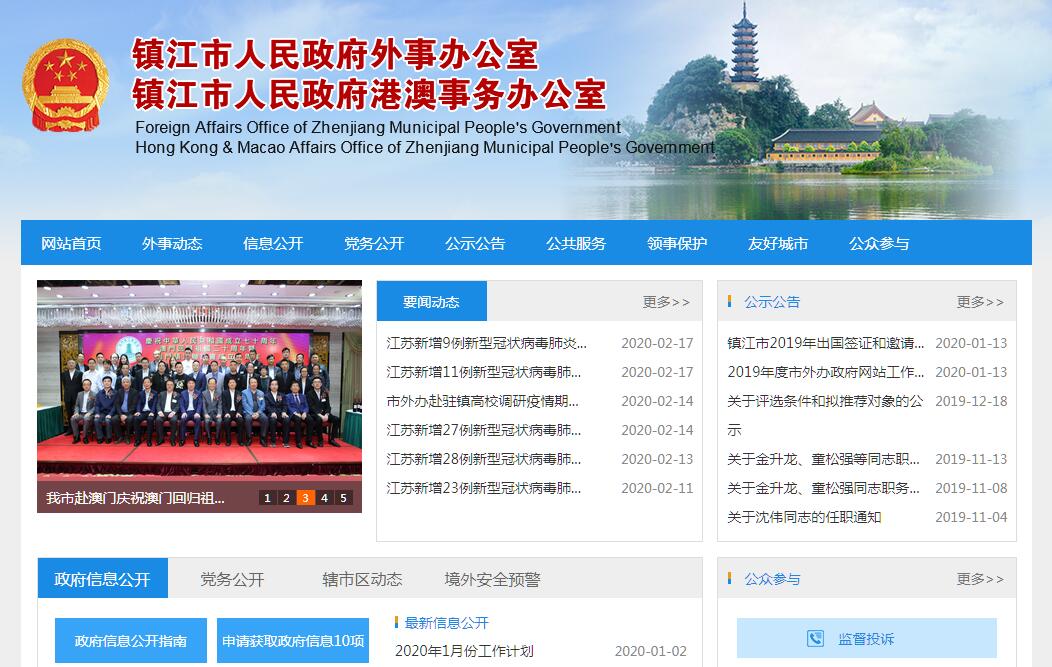 镇江市外事办公室的主要职责是:(一)贯彻执行国家和省对外方针政策、涉外法规以及市委、市政府关于外事和涉外工作的指示和决定;归口管理、统筹协调全市外事工作。(二)贯彻执行中央对香港、澳门的政策规定,统筹协调和归口管理我市与香港、澳门特别行政区往来工作。(三)统筹安排并承办市委、市人大、市政府和市政协领导人的出访和国内外事活动事项。(四)负责接待来我市访问的国宾、党宾和其他重要外宾;承办外国有关人员来访事宜;指导全市重要外事活动的礼宾工作。(五)承担我市与外国有关领事机构、国际组织的业务联系和交涉工作;审核、报批在我市举办的国际会议。(六)负责全市因公出国(境)工作的管理、协调和监督工作。在授权范围内,审核相关人员因公出国(境)事项,承办我市因公出国(境)人员的护照、签证、通行证申办业务。会同有关部门落实外事纪律及保密制度。(七)承办全市与各国交往事务,归口管理本市与外国友好城市和其他单位结好与交往事宜。指导本市民间对外交往工作。承担授予外国人荣誉称号、名誉职务和给予重要奖励等有关工作。(八)指导有关部门管理来本市的外国人工作,依法保障来本市外国人的合法权益。会同有关部门协调处理重要涉外事件和案件。指导、协调境外本市公民和机构的安全与合法权益保护工作,指导全市对外应急事务处理工作。归口管理外事服务工作。(九)负责全市外事干部和涉外人员的教育培训工作。会同有关部门进行对外宣传和群众性外事教育。(十)管理来本市采访的外国记者事务,指导我市有关部门做好外国记者采访活动的接待工作。