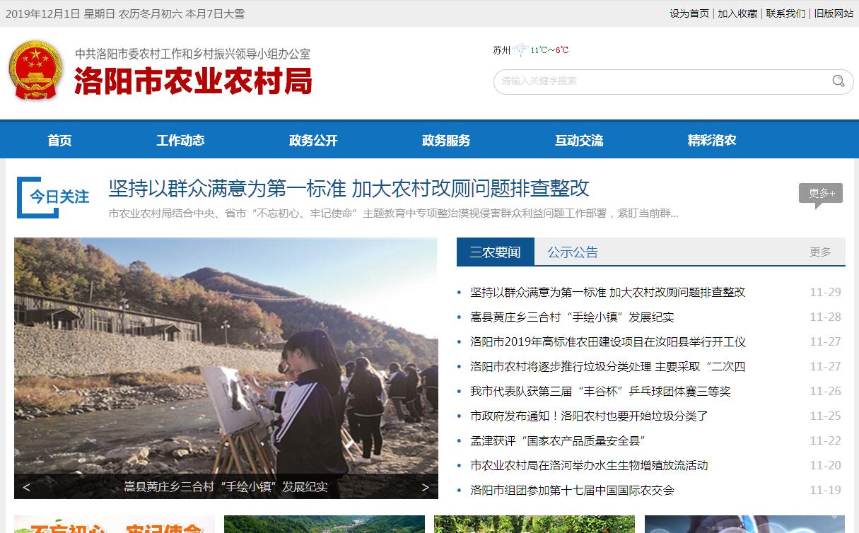 洛阳市农业农村局主要职责:(一)统筹研究和组织实施全市“三农”工作的发展规划、政策,组织起草农业农村有关地方性法规和草案,制定部门规章。指导农业综合执法。参与涉农金融保险等政策制定。(二)统筹推动全市发展农村社会事业、农村公共服务、农村文化、农村基础设施和乡村治理。牵头组织改善农村人居环境。指导农村精神文明和优秀农耕文化建设。指导农业行业安全生产工作。(三)拟订全市深化农村经济体制改革和巩固完善农村基本经营制度的政策。负责农民承包地、农村宅基地改革和管理有关工作。负责农村集体产权制度改革,指导农村集体经济组织发展和集体资产管理工作。指导农民合作经济组织、农业社会化服务体系、新型农业经营主体建设与发展。(四)指导开展乡村特色产业、农产品加工业、休闲农业、乡镇企业、农业产业化等工作。指导建设现代农业产业基地(园区),发展沟域经济,统筹推进农业一、二、三产融合发展。提出促进农产品流通的建议,培育、保护农业品牌。指导农业农村冷链物流体系建设。发布农业农村经济信息,监测分析农业农村经济运行。承担农业统计和农业农村信息化有关工作。(五)负责全市种植业、畜牧业、渔业、农垦、农业机械化等农业各产业的监督管理。指导粮食等农产品生产。组织构建现代农业产业体系、生产体系、经营体系,指导农业标准化生产。负责渔业管理和渔政渔港监督管理。负责市“9+2”工作体系中现代农业产业体系及相关重大项目建设的统筹协调工作。(六)负责全市农产品质量安全监督管理。组织开展农产品质量安全监测、追溯、风险评估。参与制定农产品质量安全标准并会同有关部门组织实施。指导农业检验检测体系建设。发布农产品质量安全信息。(七)组织全市农业资源区划工作。指导农用地、渔业水域以及农业生物物种资源的保护与管理。组织水生野生动植物保护、耕地及永久基本农田质量保护和高标准农田建设工作。(八)指导全市农产品产地环境管理和农业清洁生产。指导设施农业、生态循环农业、节水农业发展以及农村可再生能源综合开发利用、农业生物质产业发展。承担外来物种管理相关工作。(九)负责全市有关农业生产资料和农业投入品的监督管理。组织农业生产资料市场体系建设,监督实施有关农业生产资料标准。按规定发布兽药质量、兽药残留限量和残留检测方法标准。组织兽医医政、兽药药政药检工作,负责执业兽医和畜禽屠宰行业管理。(十)负责全市农业防灾减灾、农作物重大病虫害防治工作。指导动植物防疫检疫体系建设,组织、监督动植物防疫检疫工作,发布疫情并组织扑灭。(十一)负责全市农业投资管理。提出农业投融资体制机制改革建议。拟订农业投资项目建设规划,提出农业投资规模和方向以及扶持农业农村发展财政项目的建议,按规定权限审批农业投资项目,负责农业投资项目资金安排和监督管理。(十二)推动全市农业科技体制改革和农业科技创新体系建设。指导农业产业技术体系和农技推广体系建设,组织开展农业领域的高新技术和应用技术研究、科技成果转化和技术推广。负责农业转基因生物安全监督管理和农业植物新品种保护。(十三)指导全市农业农村人才工作。拟订农业农村人才队伍建设规划并组织实施,指导农业教育和农业职业技能开发,指导新型职业农民培育、农业科技人才培养和农村实用人才培训工作。(十四)牵头开展全市农业对外合作工作。承办政府间农业涉外事务,组织开展农业贸易促进和有关国际交流合作,参与农业贸易谈判工作。提出主要农产品的出口建议,负责农产品出口基地建设并配合有关部门做好农产品出口工作。(十五)完成市委、市政府和中共洛阳市委农村工作和乡村振兴领导小组交办的其他任务。
