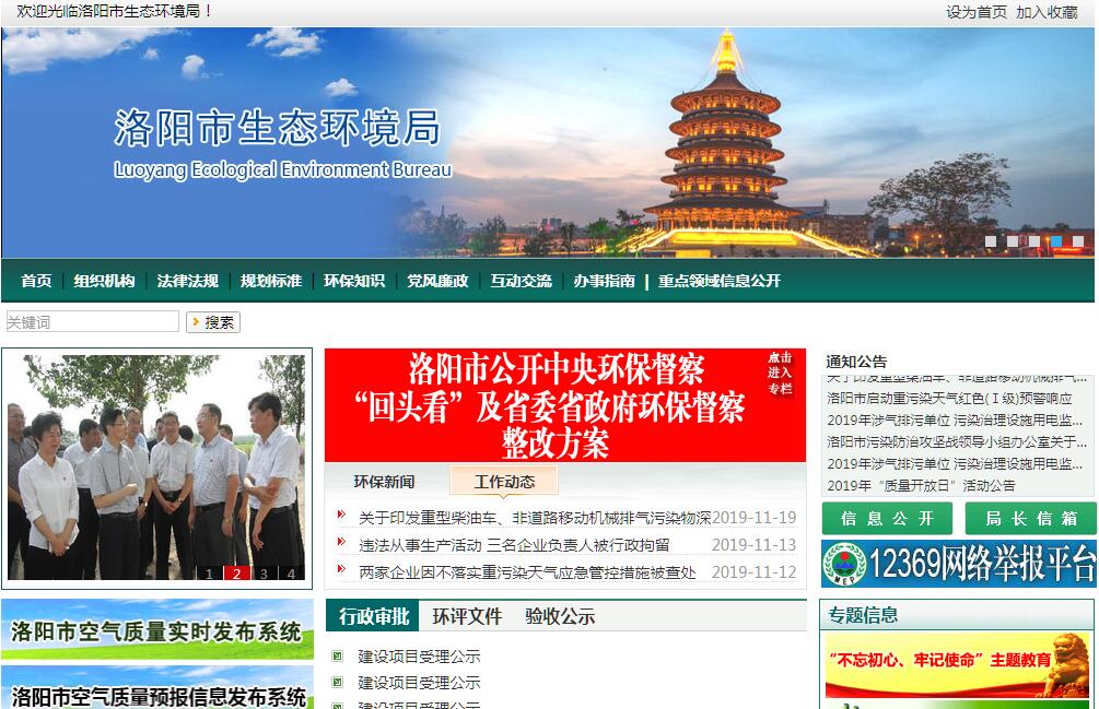 根据《中共河南省委办公厅、河南省人民政府办公厅关于印发〈洛阳市机构改革方案〉的通知》(厅文〔2018〕43号),制定本规定。洛阳市生态环境局是市政府工作部门,为正处级。洛阳市生态环境局贯彻落实中央关于生态环境保护工作的方针政策和决策部署以及省委、市委工作要求,在履行职责过程中坚持和加强党对生态环境保护工作的集中统一领导。其主要职责是:(一)负责建立健全生态环境基本制度。会同有关部门拟订并组织实施全市环境保护政策、规划,起草地方性法规、规章草案。牵头指导实施生态环境损害赔偿制度,协调解决有关跨区域、跨流域环境污染纠纷。会同有关部门编制并监督实施生态环境规划和重点区域、流域、饮用水水源地生态环境规划和水功能区划;参与制定全市主体功能区划。统筹协调重点区域、流域生态环境保护工作;组织制定主要污染物排放总量控制和交易制度、排污许可证制度并监督实施,确定大气、水等纳污能力,提出实施总量控制的污染物名称和控制指标,监督检查各地污染物减排完成情况。实施生态环境保护目标责任制。参与生态保护补偿工作。加强“智慧环保”建设,推进大数据、云计算在生态环境保护中的运用。(二)负责生态环境保护领域固定资产投资及方向和项目管理相关工作。按市政府规定权限,审批、核准市规划内及年度计划规模内固定资产投资项目,并配合有关部门做好组织实施和监督工作。(三)负责生态环境准入的监督管理。受市政府委托对市重大经济和技术政策、发展规划以及重大经济开发计划进行环境影响评价。按国家和省规定审批或审核重大开发建设区域、规划、项目环境影响评价文件。对涉及环境保护的地方性法规、规章草案提出有关环境影响方面的意见。拟订并组织实施生态环境准入清单。(四)负责全市环境污染防治的监督管理。制定大气、水、土壤、噪声、光、恶臭、固体废物(危险废物)、化学品、移动源等污染防治管理制度、规范、标准并监督实施。会同有关部门监督管理饮用水水源地和南水北调中线工程水源项目区生态环境保护工作,组织指导城乡生态环境综合整治,监督指导农业面源污染治理和防止地下水污染工作,组织实施区域大气污染联防联控工作。指导协调和监督农村生态环境保护。落实国家和省应对气候变化、温室气体减排、低碳发展等政策、规划,组织实施应对气候变化国家战略。(五)负责核与辐射安全的监督管理。监督国家有关政策、规划、标准落实,牵头核安全工作协调机制有关工作,负责辐射环境事故应急处理工作。监督管理放射源辐射安全,监督管理核技术利用、电磁辐射、伴有放射性矿产资源开发利用中的污染防治。配合做好核设施安全、核材料管制和民用核安全设备等污染治理的监督管理。参与核事故应急处理。(六)负责生态环境监测工作。拟定生态环境监测制度和规范、相关标准并监督实施。会同有关部门统一规划生态环境质量监测站点设置,组织实施生态环境质量监测、污染源监督性监测、温室气体减排监测及应急监测,组织对生态环境质量状况进行调查评价、预警预测,组织建设和管理市生态环境监测网和全市生态环境信息网,建立和实行生态环境质量公告制度,统一发布全市生态环境综合性报告和重大生态环境信息。(七)指导协调和监督生态保护修复工作。组织编制生态保护规划,监督对生态环境有影响的自然资源开发利用活动、重要生态环境建设和自然生态破坏恢复工作。组织制定各类自然保护地生态环境监管制度并监督执法,监督野生动植物保护、湿地生态环境保护、荒漠化防治等工作,监督生物技术环境安全,牵头生物物种(含遗传资源)工作,组织协调生物多样性保护工作。(八)负责重大环境问题的统筹协调和监督管理。牵头协调重特大环境污染事故和生态破坏事件的调查处理,指导协调县级政府重特大突发环境事件应急、预警工作;组织编制并监督实施市级突发环境事件应急预案、重污染天气应急预案、核与辐射事故应急预案。(九)统一负责生态环境监督执法。组织开展全市生态环境保护执法检查活动,查处重大生态环境违法问题,指导全市生态环境保护综合执法队伍及业务建设。(十)组织、指导和协调生态环境宣传教育工作。拟定并组织实施全市生态环境保护宣传教育纲要,组织指导全市生态环境保护宣传工作,开展生态文明建设和环境友好型社会建设的宣传教育工作,推动社会组织和公众参与,加快形成生态环境保护大格局。(十一)完成市委、市政府交办的其他任务。