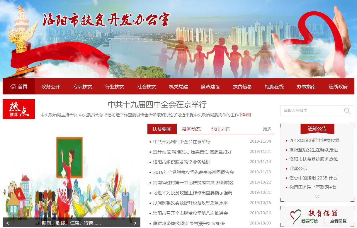 洛阳市扶贫开发办公室,为市政府工作部门。其主要职责是:(一)贯彻落实国家、省关于扶贫开发的法律、法规、规章和方针、政策,制定全市扶贫开发工作政策、规划和年度计划并组织实施。(二)负责组织落实省下达的扶贫开发责任目标,负责各县(市、区)扶贫开发责任目标的下达、考核和验收,负责对全市扶贫开发工作进行综合考核,并向市政府提出奖惩意见。(三)负责对贫困村、贫困户的人口识别和建档立卡,管理市扶贫开发信息化管理系统;负责贫困人口、扶贫开发工作情况的统计和动态监测,实施精准扶贫管理。(四)负责财政专项扶贫资金项目管理,会同有关部门制定扶贫开发项目管理办法;负责市级扶贫开发重大项目的考察、评估、论证、申报工作;负责县(市、区)年度扶贫开发项目计划备案工作;负责扶贫开发项目的监督、检查、验收工作。(五)负责市扶贫开发领导小组办公室工作,会同有关部门研究扶贫开发重大项目、跨区域项目和专项项目,协调行业部门扶贫工作,引导行业部门政策、资金和项目向贫困地区倾斜,支持扶贫开发工作。(六)负责扶贫开发整村推进、连片开发、扶贫搬迁工作,指导全市扶贫开发工作重点县、乡、村基础设施建设和社会公益事业建设。(七)负责科技扶贫、到户增收、产业化扶贫、小额信贷扶贫和互助资金扶贫工作,指导全市贫困地区特色产业发展、贫困群众增收致富。(八)负责“雨露计划”培训工作,提高贫困劳动力劳动技能和综合素质,指导农村贫困地区劳动力转移就业。(九)负责外资扶贫项目与彩票公益金项目的论证申报,指导项目实施,会同有关部门检查验收;参与开展扶贫国际交流与合作。(十)负责中央、省定点帮扶单位的服务协调工作,负责市、县定点帮扶工作的组织领导和综合协调工作;负责社会化力量参与扶贫的动员组织、资金募集、项目管理和服务保障工作;指导市扶贫开发协会、市扶贫基金会工作。(十一)负责市加快革命老区发展领导小组办公室工作,指导协调全市革命老区扶贫工作;负责利用中央专项彩票公益金支持贫困革命老区扶贫项目建设工作;指导市革命老区促进会工作。(十二)负责本部门及所属事业单位网上名称管理工作。(十三)承办市政府交办的其他事项。