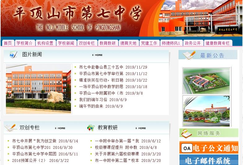 平顶山市第七中学始建于2006年5月,于2008年7月正式投入使用,是一所直属于平顶山市教育局的普通初级中学。学校位于新城区大香山路北段、市政大厦北800米,占地面积约80亩。校园设计新颖、规划合理,环境优美。拥有高标准、现代化的教学楼、行政办公楼、实验楼,三座楼厅廊相连、浑然一体。拥有高质量的图书馆、电子阅览室、塑胶跑道及人工草坪足球场,室内体育馆,教学设施达到省定一级标准。学校师资力量雄厚,现有教职工112人,拥有大学本科学历103人,教师学历达标率100%,中学高级教师21人,省级学科带头人6人,省、市级骨干教师17人,省市级优质课教师26人,省级师德标兵6人,市级优秀教师8人,教师队伍学历层次高,政治素质高,业务素质硬,师德高尚,结构合理。建校几年来,学校始终坚持“培养学生良好的行为习惯,提高学生综合能力,为学生终身发展奠基” 的办学理念,把“创一流学校、育优秀人才”作为学校的办学目标,在全体师生的共同努力下,形成了“敬业创新、盛德有范”的教风和“自主勤奋、求异求真”的学风,逐步形成了以“愉快高效课堂”为主要特色的教学模式,促使优等生更加优秀,不同层次、不同类别的学生都得到转化、提高和发展。学校先后被授予“市级文明单位”、“市基础教育先进集体”、“省级卫生学校”、“市级教科研先进单位”、“市消防先进单位”、“省校本教研实验学校”、“省中小学师德师风先进学校”等荣誉称号。平顶山市第七中学将继续恪守“志存高远、追求卓越”的校训,努力塑造“励志笃行、尚德文明”的校风。营造浓郁的校园文化氛围,形成独特的人文特色。以传承文明、传播文化为己任,张扬个性、追求卓越、打造教育精品、争创一流名校。