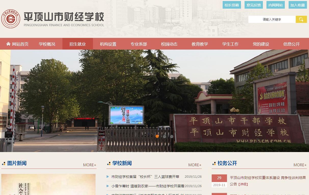 平顶山市财经学校(平顶山市干部学校)是平顶山市教育局直属的一所全日制公办中等专业学校。创建于1958年,2009年按照平顶山市职教攻坚要求,学校由原平顶山财贸(干部)学校和平顶山市经济管理学校合并而成,主要职能是开展中专学历教育和各类职业技能培训。2012年被教育部确定为国家级改革示范校创建学校;2014年被教育部确定国家首批教学质量合格评估创建学校;是国家级重点中专、省级示范性中专,省级文明单位、省职业教育攻坚工作先进单位、省全民技能振兴工程培训基地、省雨露计划培训基地。学校的前身,原平顶山市财贸(市干部)学校和原市经济管理学校都是国家级重点中等职业学校、省级文明单位、省级卫生先进单位,都有着悠久的办学历史、深厚的文化底蕴和鲜明的办学特色。平顶山市财贸学校即平顶山干部学校成立于1979年,原是隶属于平顶山市委的一所行政干部培训学校,也是全国最早的三所行政干部学校之一,1985年后又转为全日制普通中等专业学校,具有在职干部培训、成人学历教育和普通中等职业教育等职能。平顶山市经济管理学校始建于1958年,1989年正式开办中等职业教育,是平顶山市第一批国家级重点中等职业学校。学校已累计为社会培养各类高素质中等专业技术人才30000多人,开展干部培训、农民工培训及行业培训20000多人次,为平顶山市的教育事业做出了重要贡献。2009年底挂牌成立后,市财经(市干部)学校继续拥有国家级重点中专、省级文明单位、省级卫生先进单位等荣誉或称号。新一届校领导班子从职业教育规律出发,为学校的生存发展精准定位,以阔大的办学视野,提出一整套具有前瞻性又有实效性的办学理念。据此进行资源整合,调整培育优势骨干专业,优化重组教师教学团队,充实提升装备水平,探索培植办学特色,蕴蓄积聚发展能量。经过又近三年的艰苦努力,平顶山市财经学校正以全新的面貌展现于世人面前,成为各地学子就学、立身、谋业、求发展的首选之地。学校占地面积146520平方米,建筑面积124180平方米,有东、西两个校区。东校区(原平顶山财贸学校)位于平顶山市神马大道中段南25号,西校区(原平顶山市经济管理学校)位于平顶山市荆山南路2号。学校十分重视校园基础设施建设和对校园环境的绿化、硬化和美化,注重环境育人。学校绿地茵茵,树木常青,花开四季,处处洋溢清新怡人之气息;琉璃亭台、幽静长廊、厚重之石,处处凝结着博雅文化之风骨。学校办学实力雄厚,教学设施齐全,功能完备。有高标准的办公楼两栋;教学楼两栋,有教室140间;图书馆面积1000多平方米,藏书10多万册,有各类现期报刊近400种,图书阅览室宽敞明亮,可同时容纳200人读书,学校还建有电子图书阅览室;培训楼一栋,建筑面积6000平方米;有男女生公寓楼四栋,可同时容纳近6000人住宿;大型餐厅礼堂两个,餐厅环境干净整洁,可同时容纳4000多人就餐。体育运动设施包括足球场两个,铺设有标准跑道;标准篮球场地10个;有专用的排球场、羽毛球场、乒乓球室等等。学校有教学用、管理用微机1000多台,实现了教学和管理的网络化、现代化。学校十分重视实践性教学和实验实训工作,有实训楼两栋,实训室、实训车间65个,其中,有多媒体语音教室3个,多媒体网络实训室10个,数控车床实训车间1个,普通车床实训车间1个,电子电工实训室1个,机电一体化实训室1个,数字模拟电路实训室1个,制冷制热实训室1个,PLC实训室1个,计算机维修实训室2个,家电维修实训室2个,会计模拟做账实训室1个,电算化会计实训室6个,画室4个,书法实训室1个,制陶实训车间2个,服装设计实训室1个,沙画实训室1个,电子琴房2个,钢琴房3个,学生形体训练室2个,理化生实训室3个。学校各类实验、实训及辅助设备2600多台套,总价值约2000万元。学校重视校企合作、顶岗实习和工学结合工作,实施“订单式人才培养模式”,与省外的广东美的集团、青岛海尔集团、台湾富士康集团、舜宇光电集团、扬州海信集团等大型知名企业开展了广泛而深入的合作,并在相关企业建立了稳定的学生实习实训与就业基地;与平顶山市平高电气集团、文博文化公司、平顶山市商业大楼、平顶山市六一幼儿园等单位建立了良好的校企合作、校际合作关系,为学生实习就业提供了良好平台。优良的办学条件,宜人的学习环境,让平顶山市财经学校广大师生工作、学习得舒心而愉快,提升了大家的工作与学习积极性,为学校办学目标、培养目标的顺利实现奠定了坚实的物质基础。